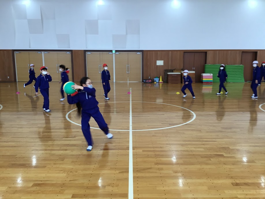 体育の授業では、走る活動やなわとびの時以外はマスクを着用し、