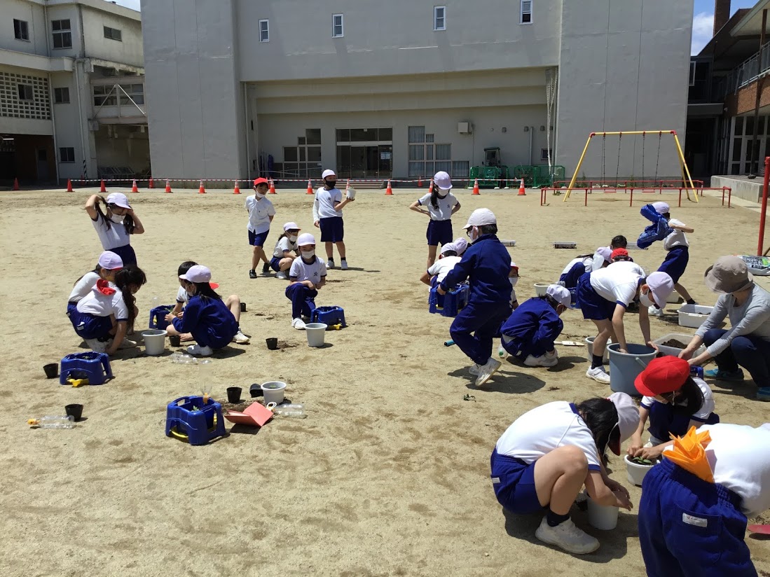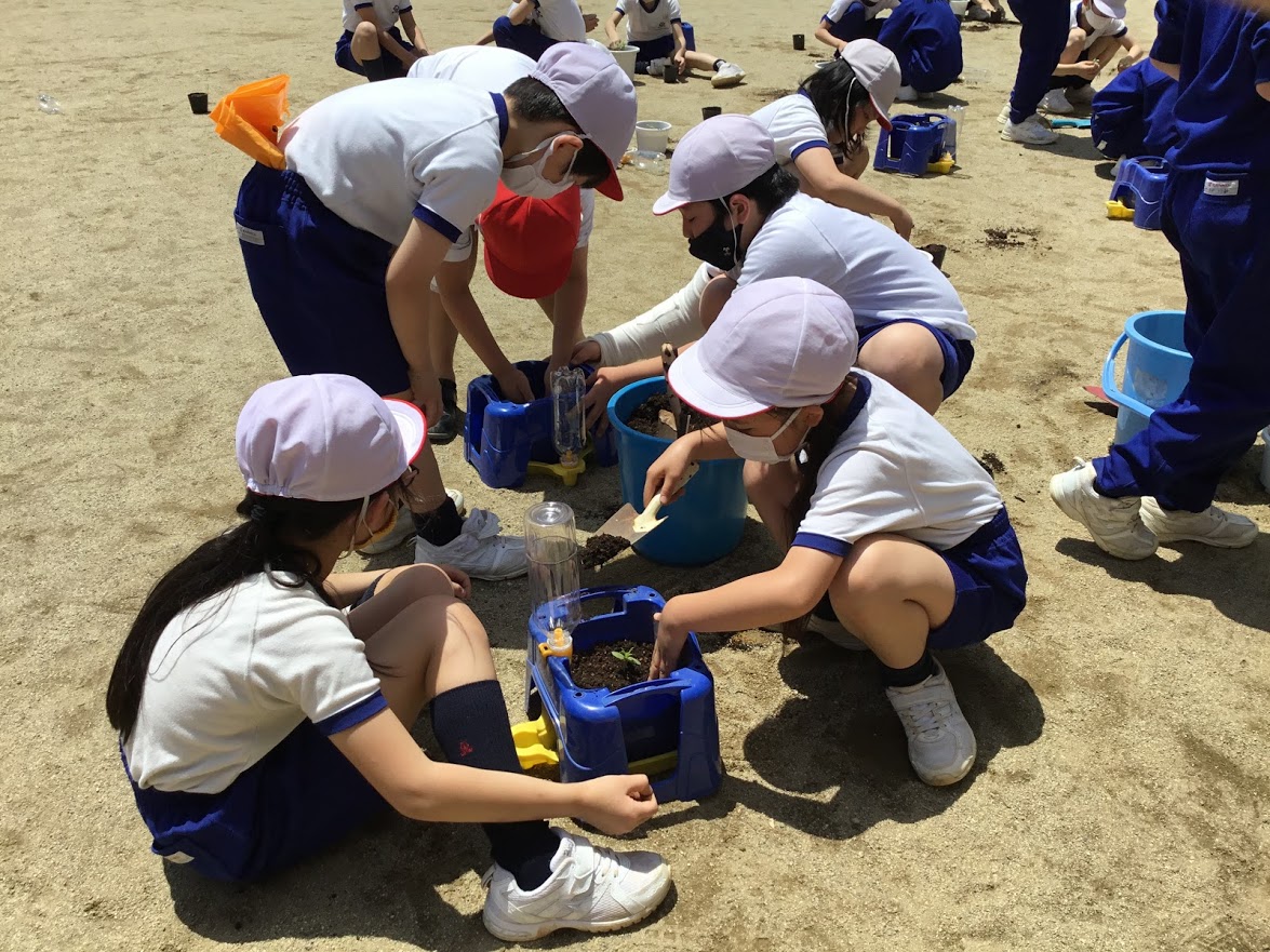 3年生の理科の学習の中で、ホウセンカやヒマワリなどを育てています。
