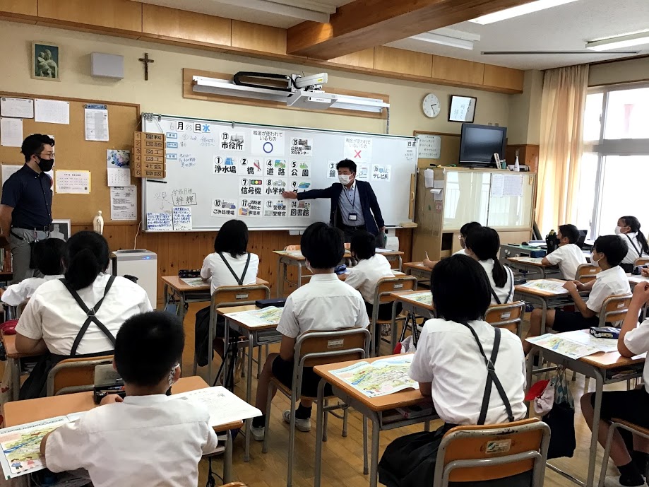 教室の中では、税金の役割や使われ方を教えていただき、