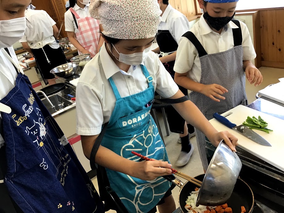 6月25日(金)、6年生の家庭科で調理実習をしました。