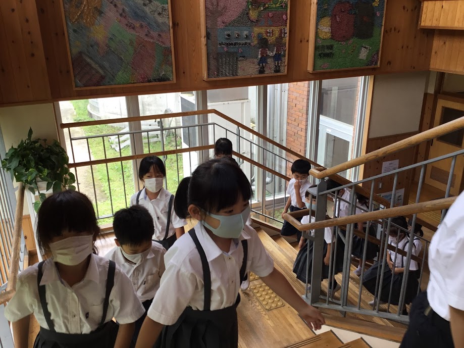 1階で学習している1、2年生の垂直避難訓練を行いました。