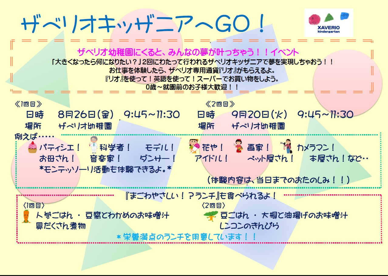 8月・9月のザベリオキッザニアのご案内
