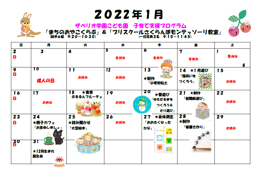 12月・1月の子育て支援プログラムのご案内