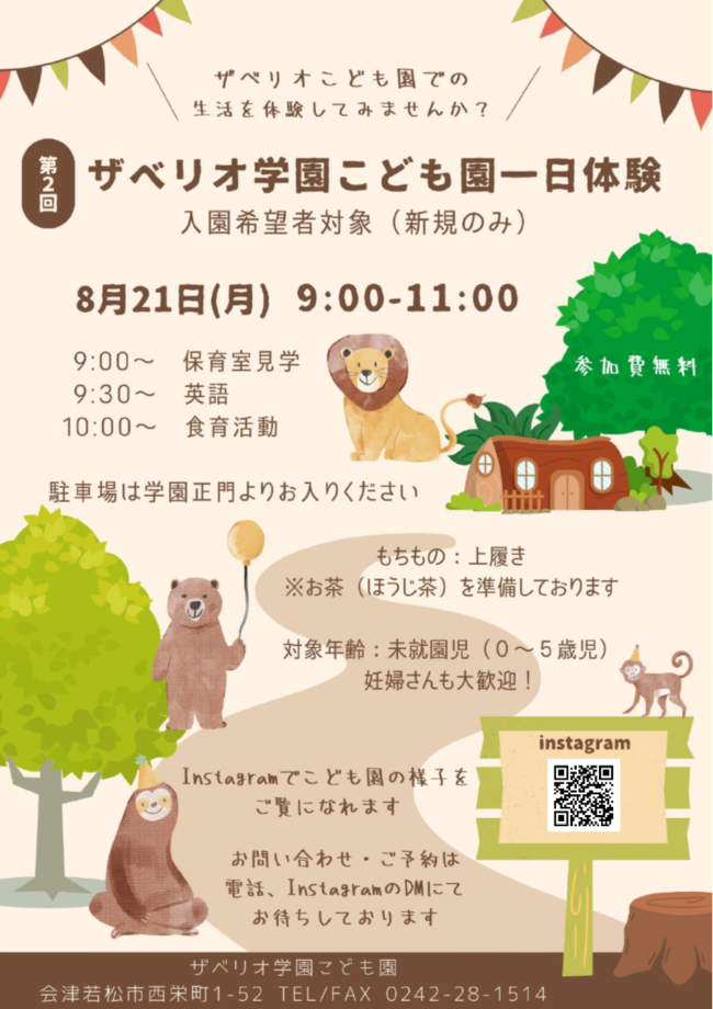 第2回一日体験のお知らせ