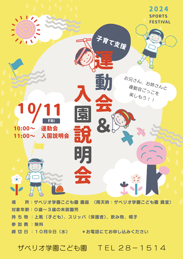 2024年子育て支援『運動会&入園説明会』についてのお知らせ