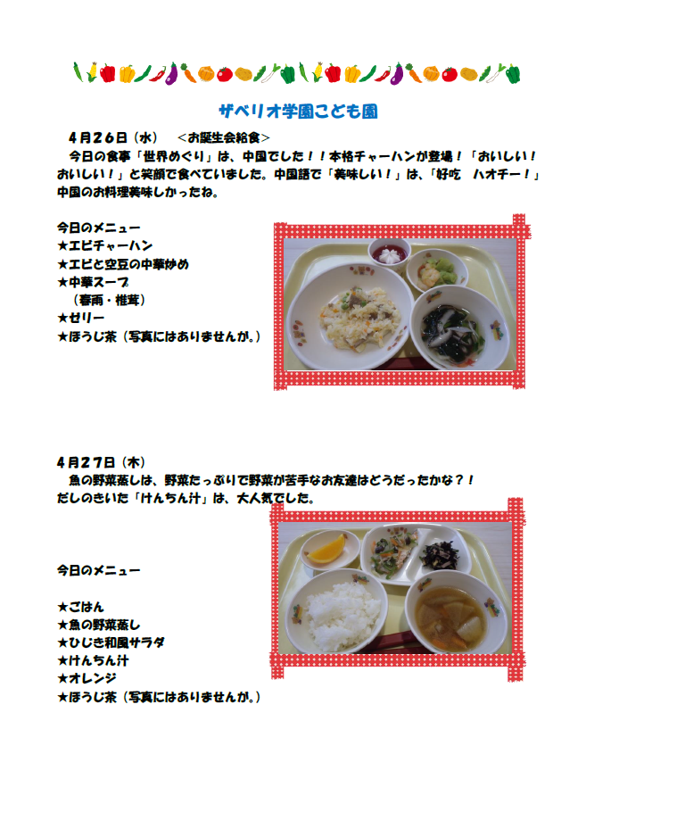 給食4月26・27日