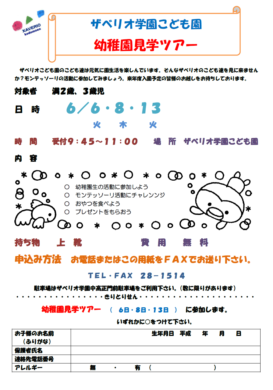 幼稚園見学ツアーのご案内