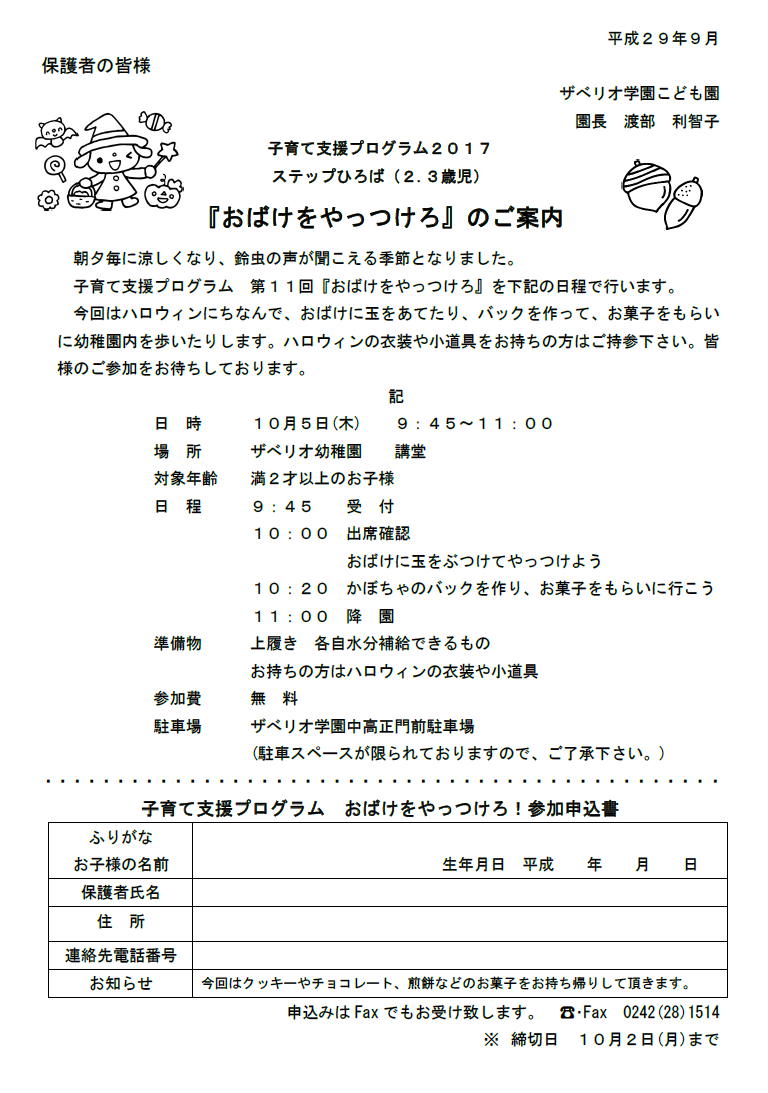 子育て支援10月5日のご案内