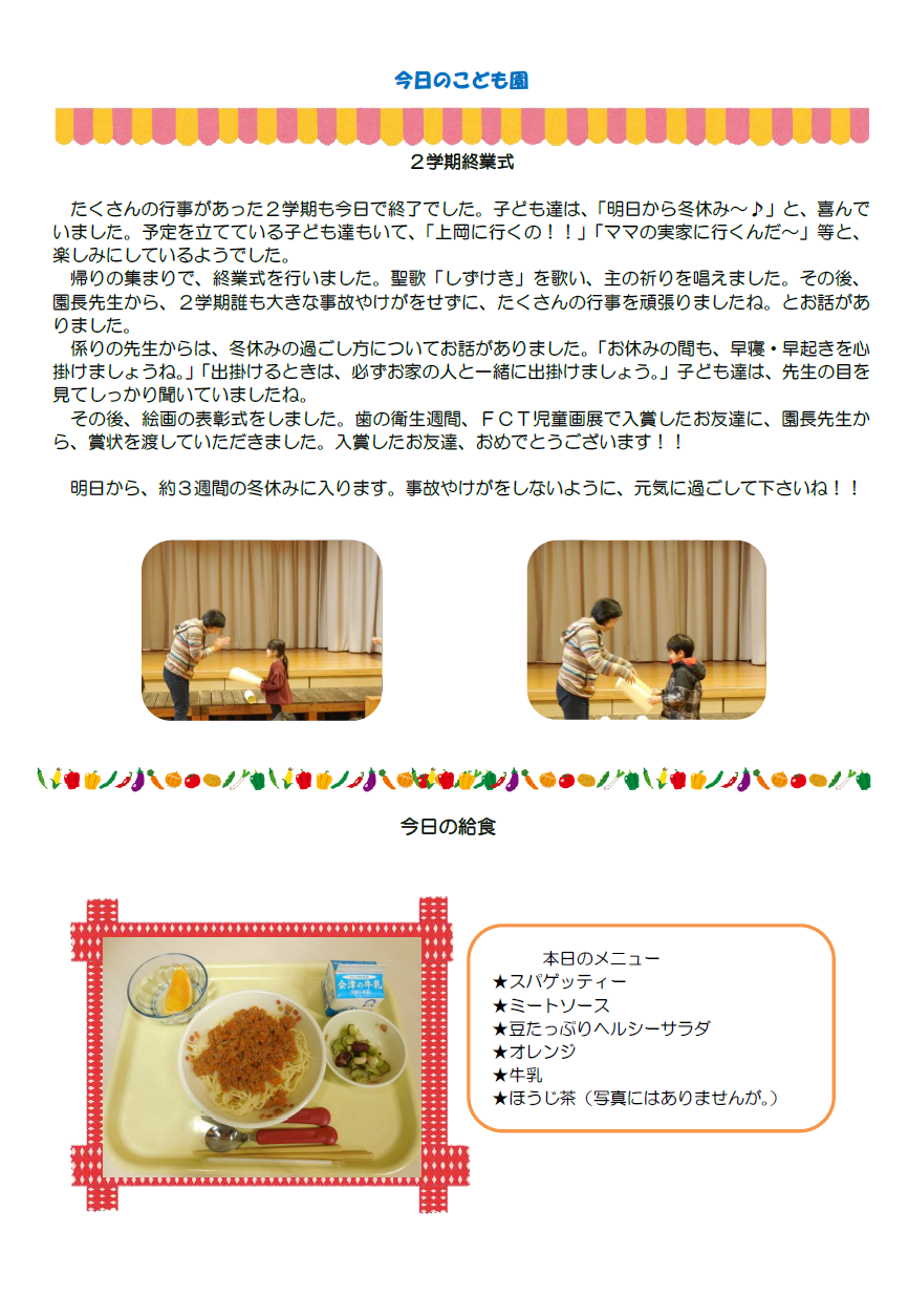 本日のこども園