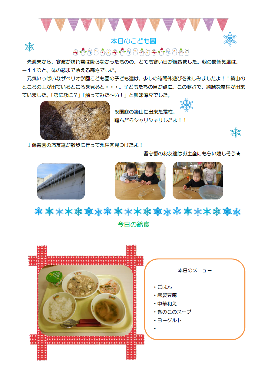 本日のこども園1月15日