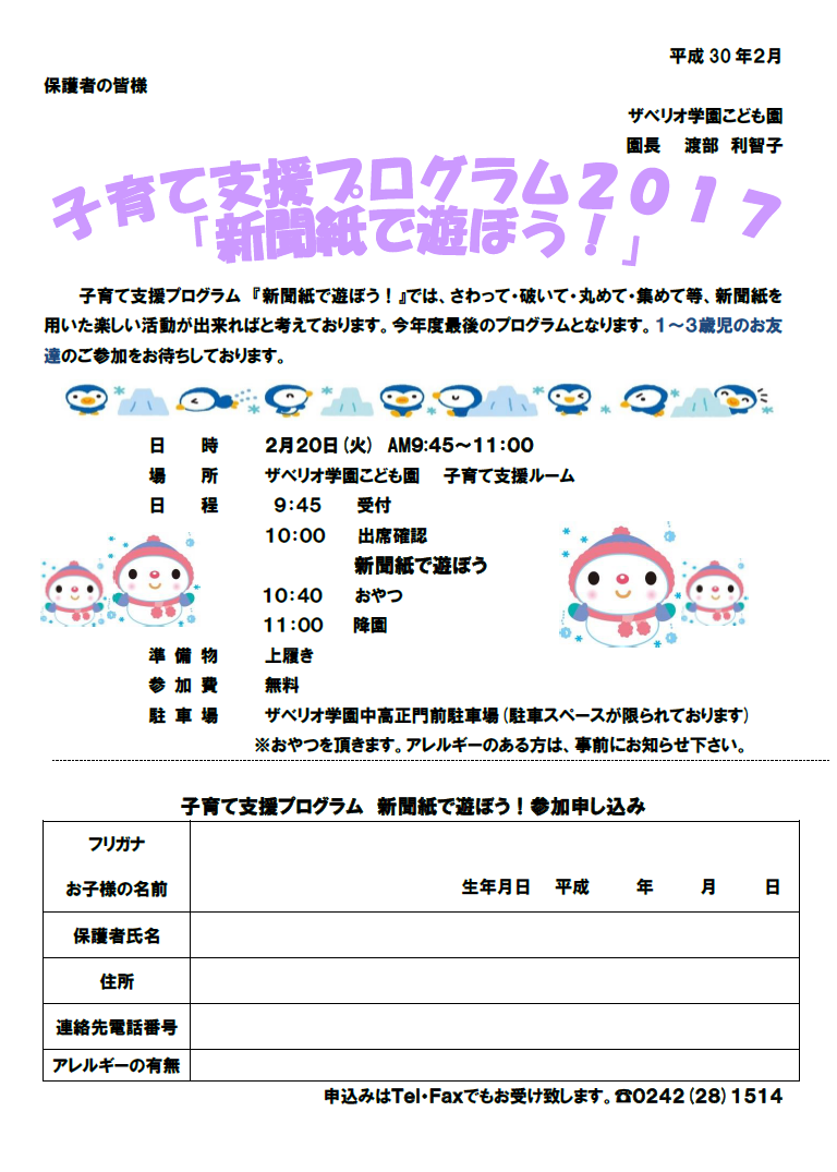 子育て支援(2月20日)のお知らせ