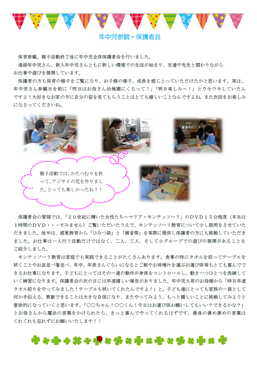 年中児参観・保護者会の様子