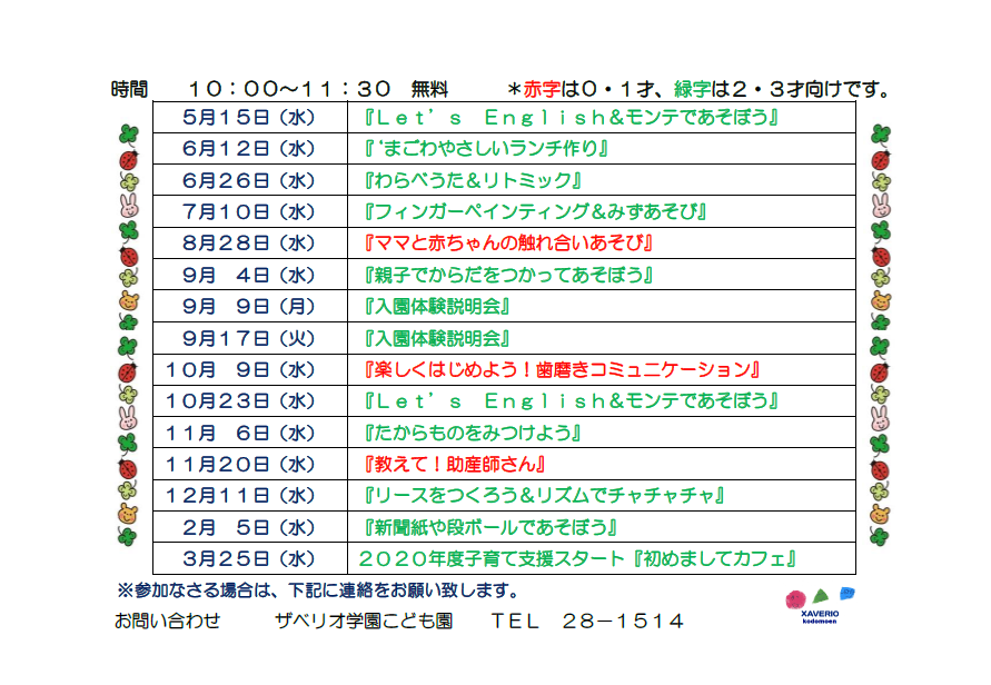 2019年度子育て支援年間スケジュール