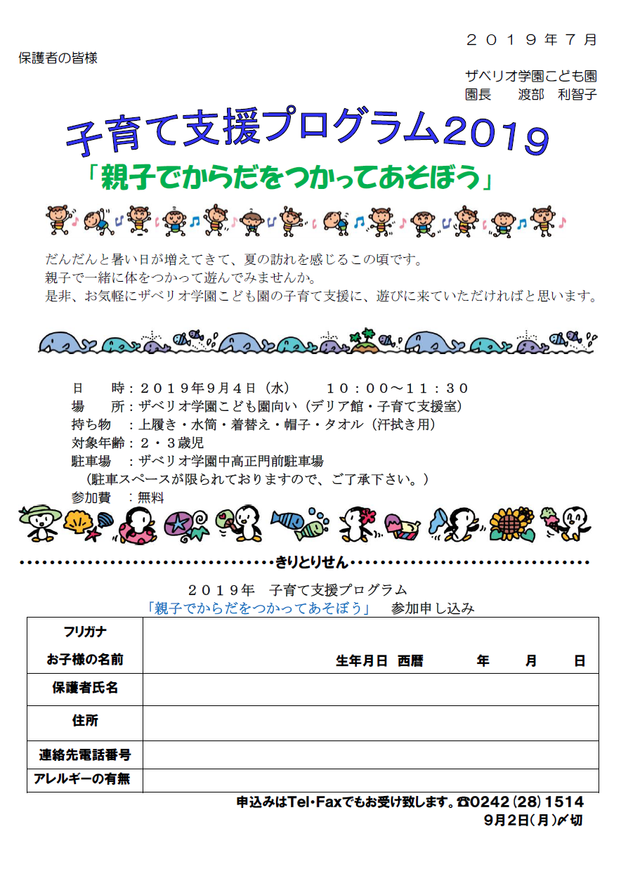 子育て支援「親子で体をつかってあそぼう」のご案内(9月4日)