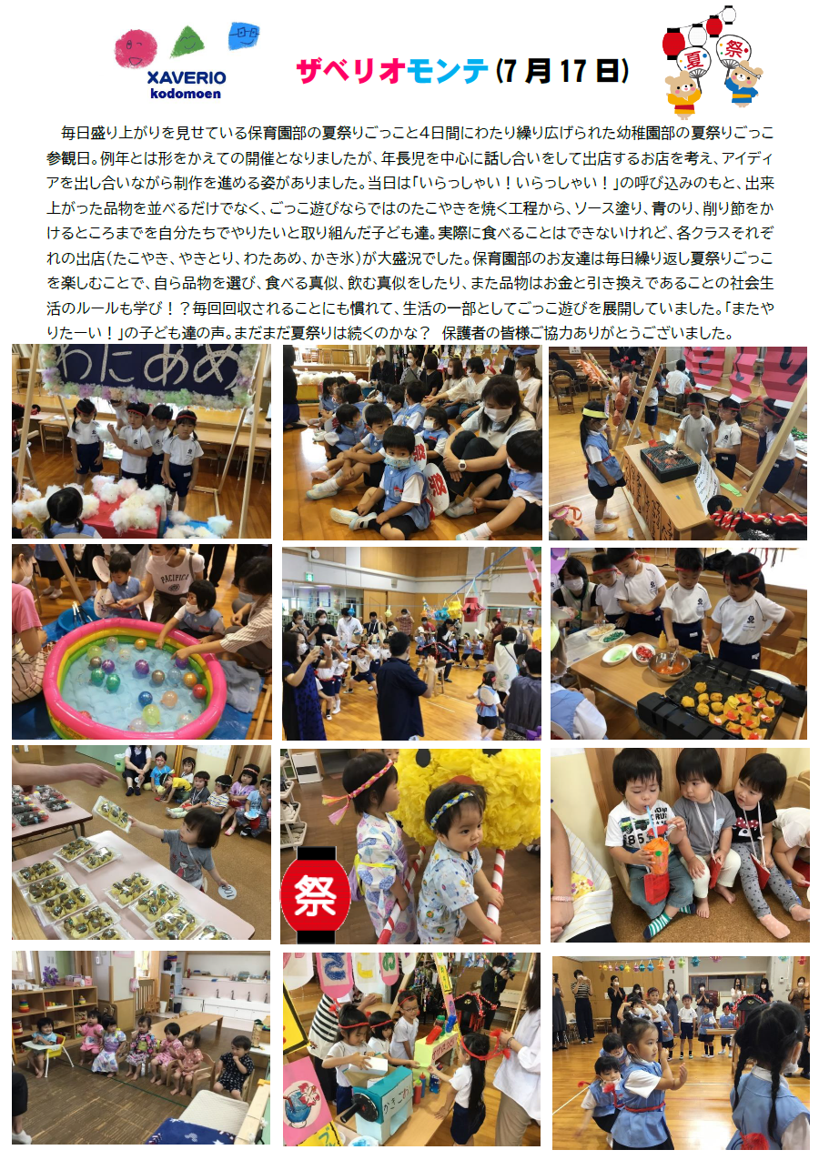 ザベリオモンテ7月17日(夏祭りごっこ参観日)