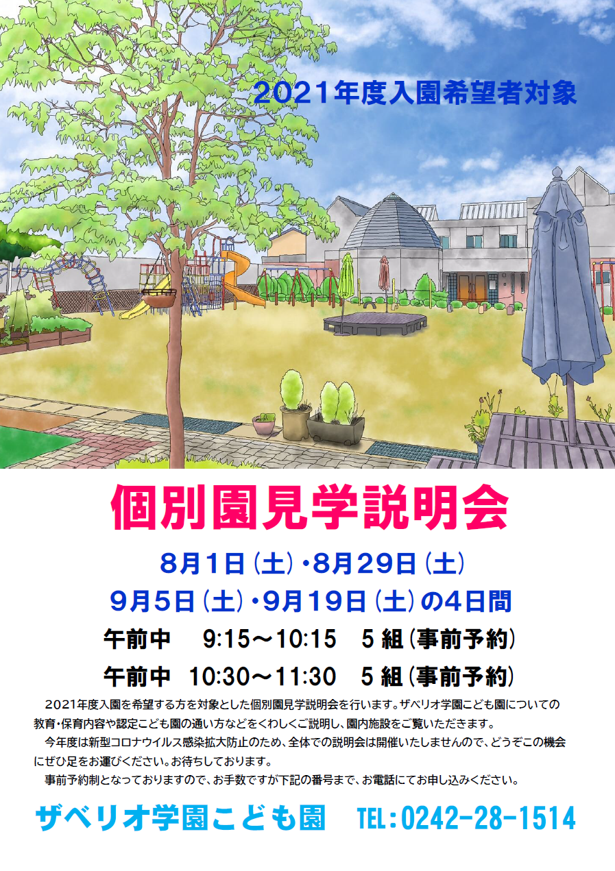 子育て支援(8・9月)のご案内&個別園見学説明会のご案内