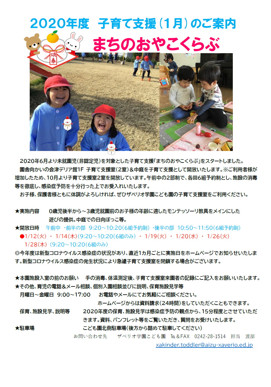2020年度子育て支援(1月)のご案内