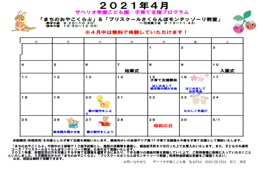 2021年度子育て支援プログラムのご案内(4月スタート)