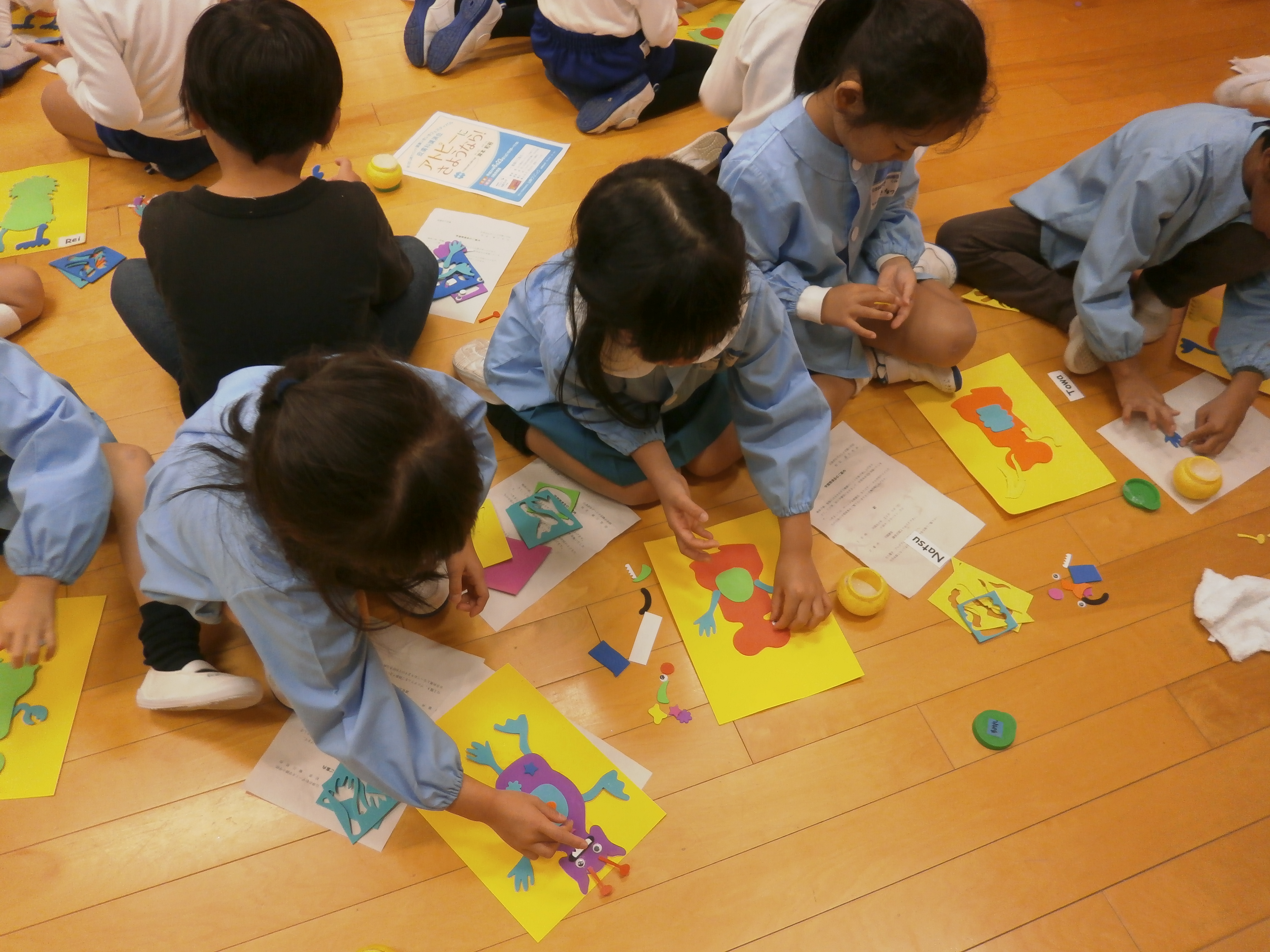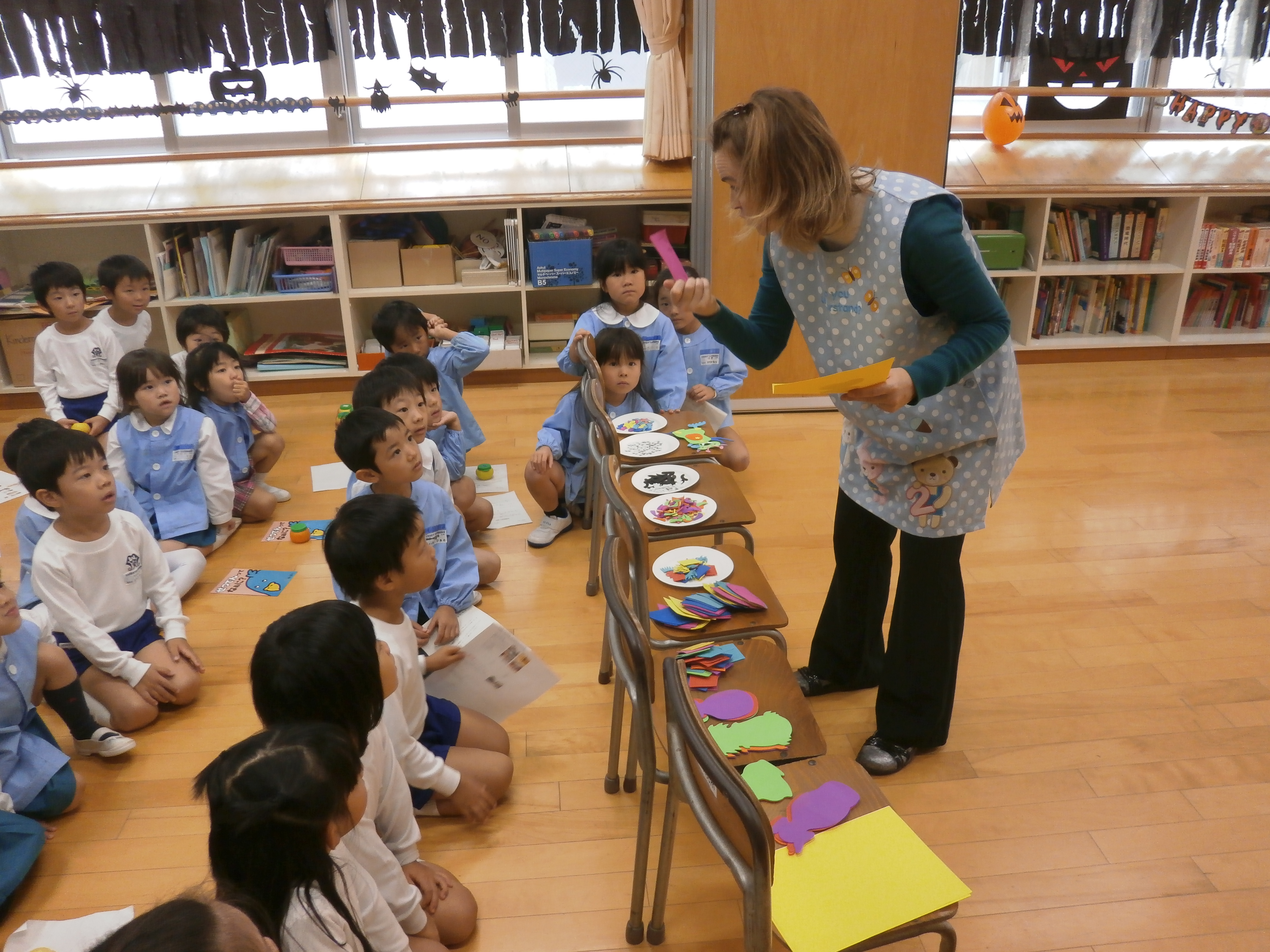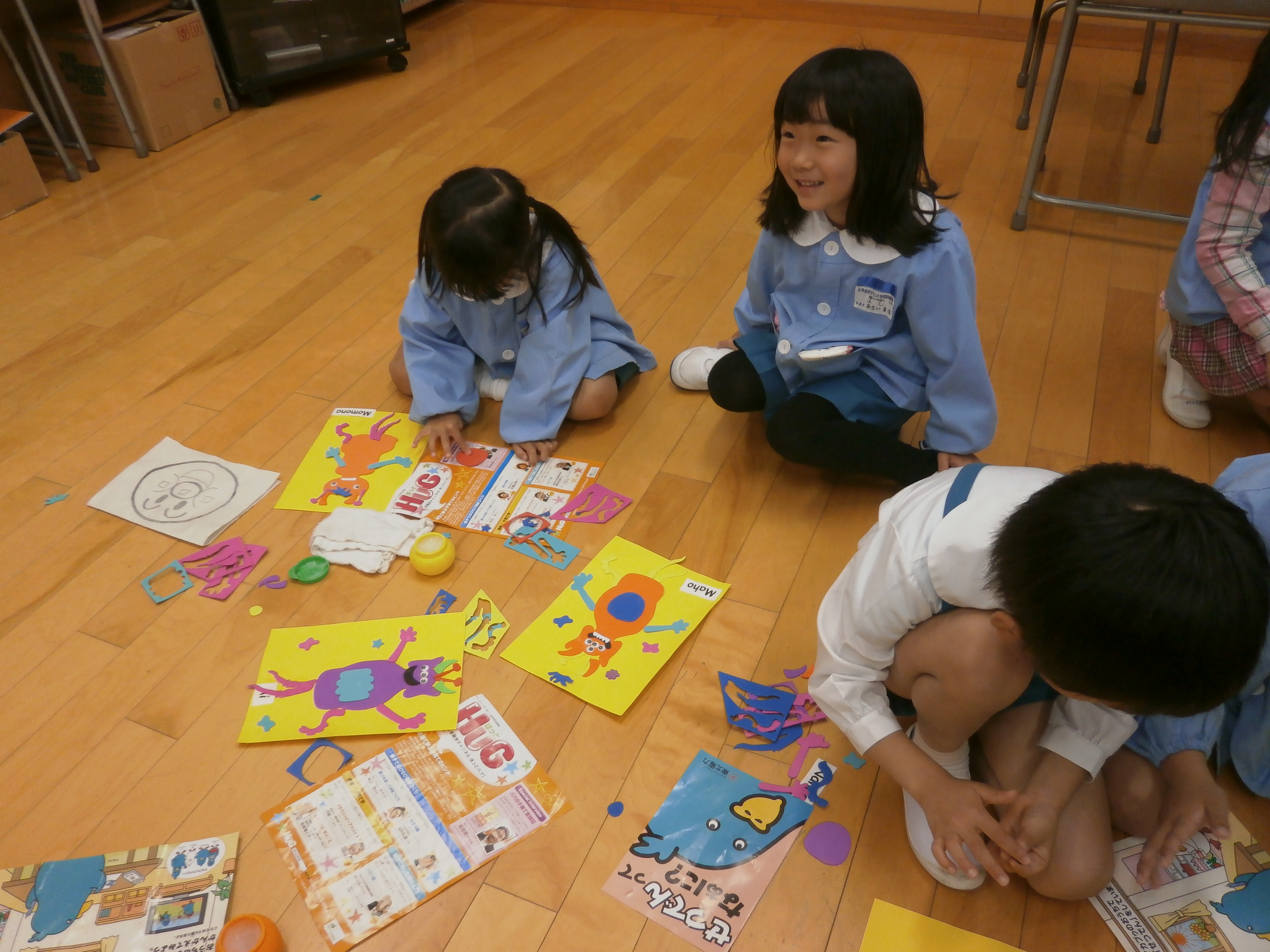 英語の歌を歌ってから、ハロウィーン・モンスターを作りました。