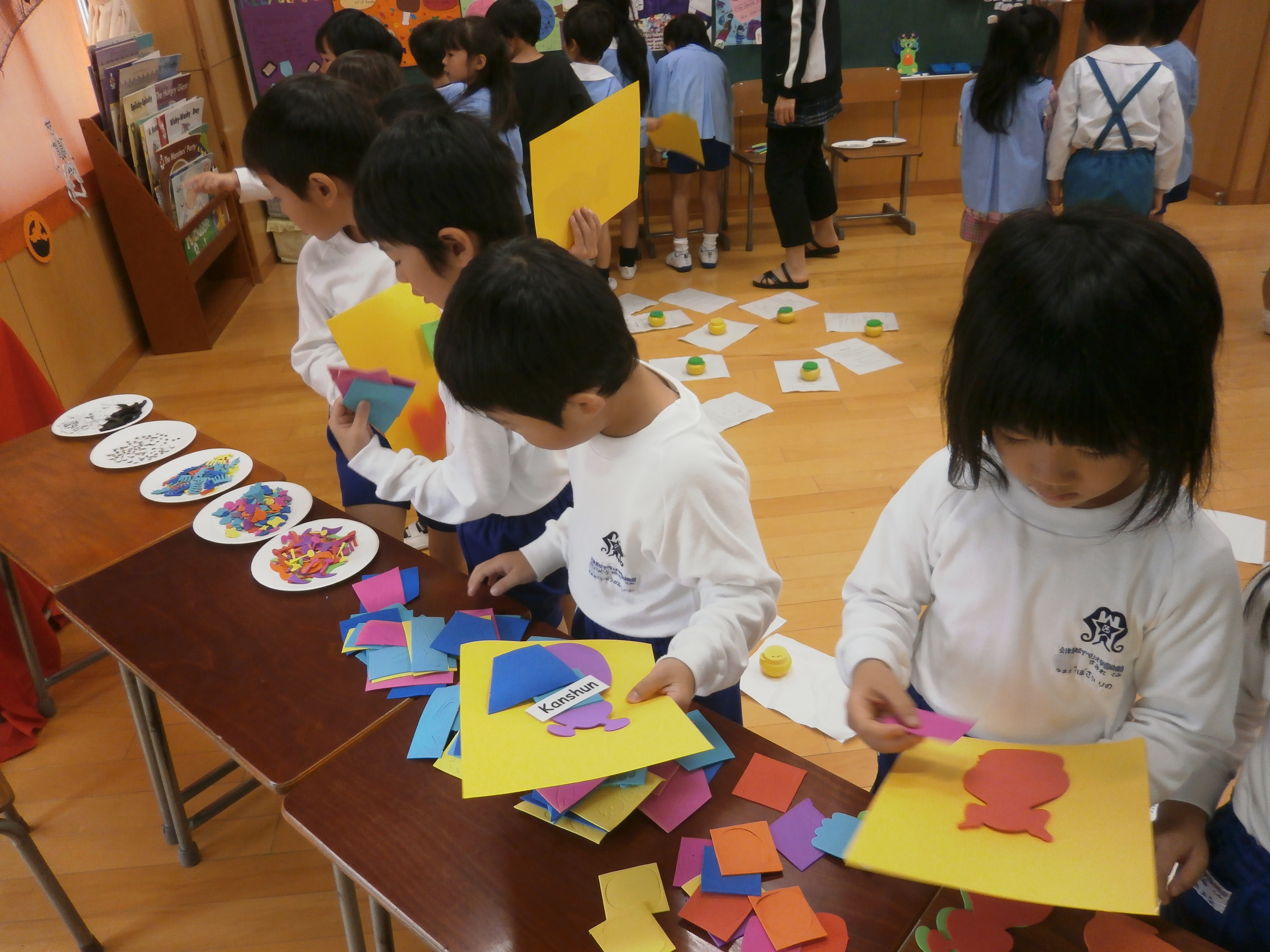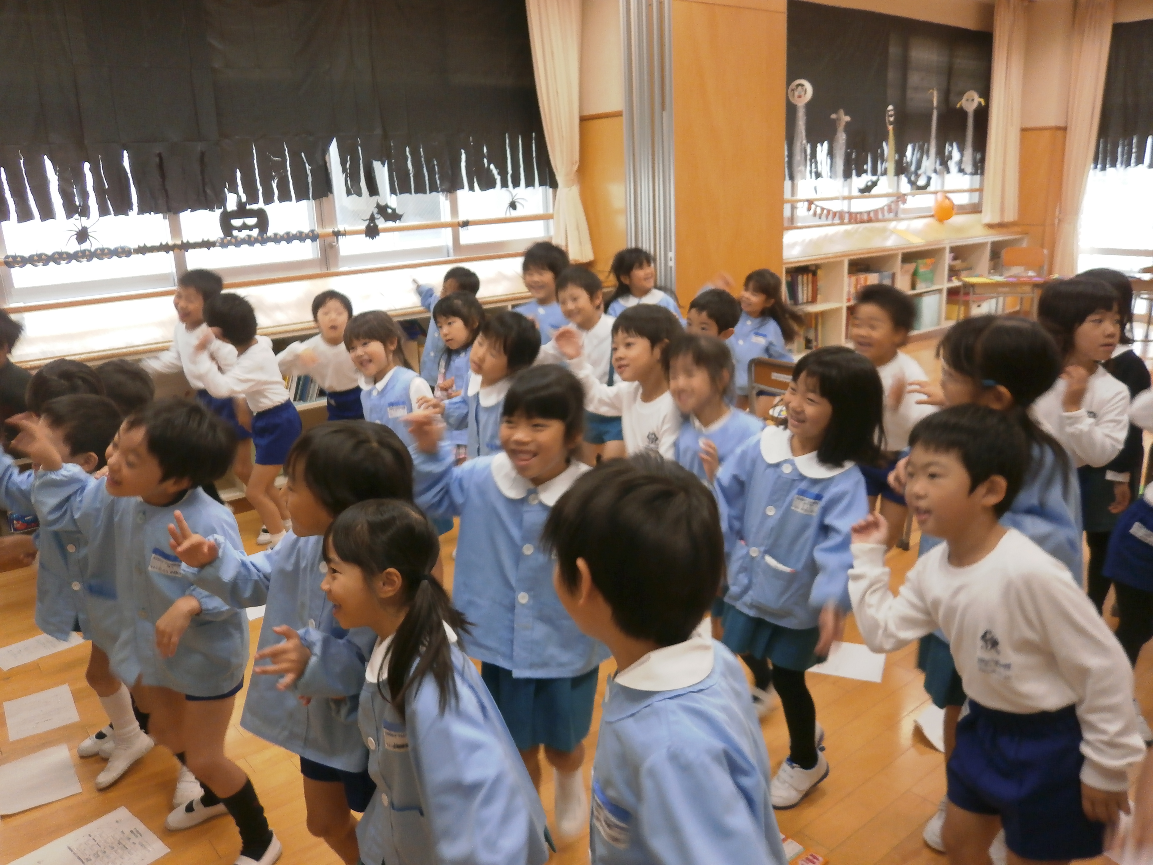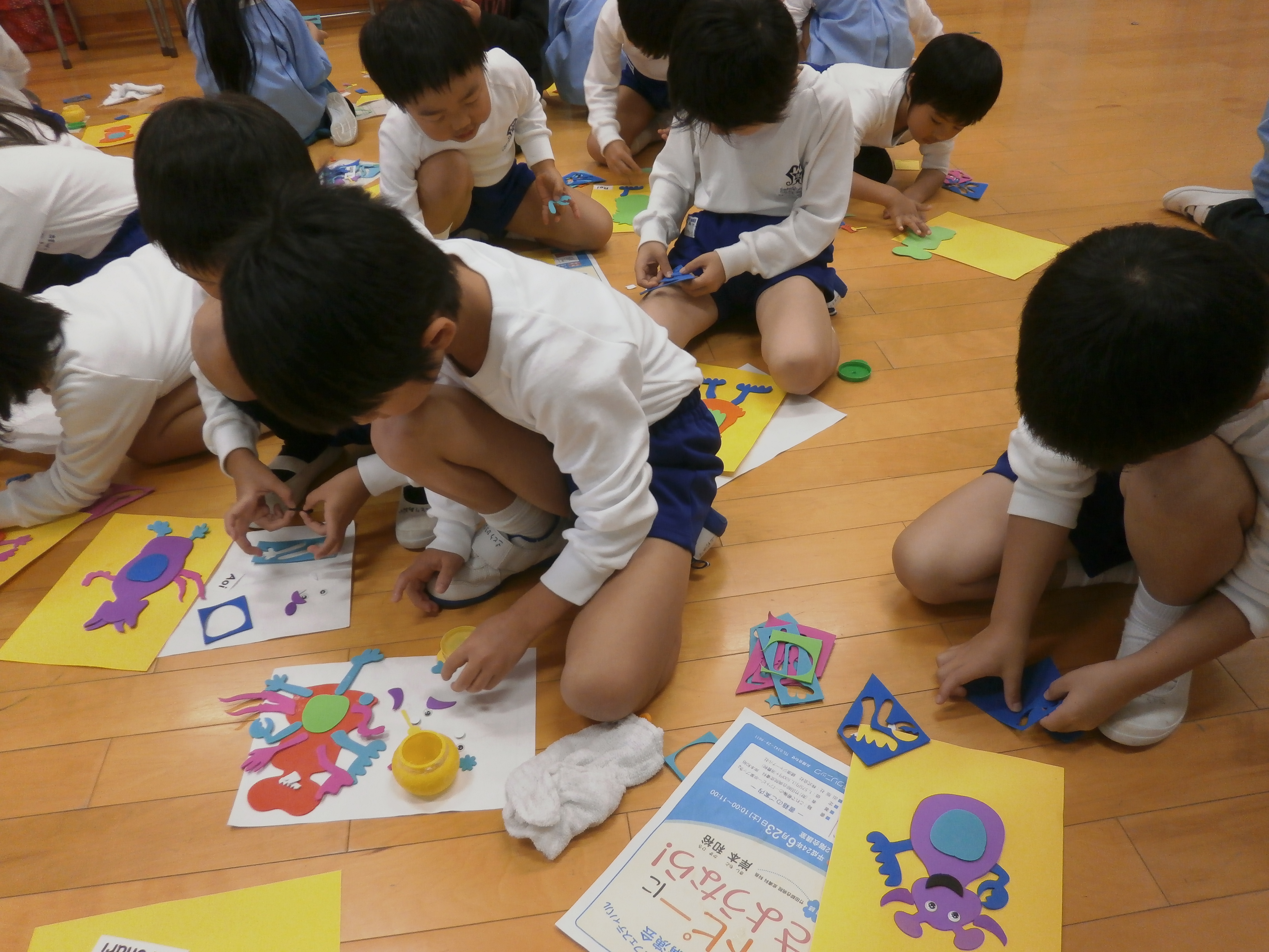 英語の歌を歌ってから、ハロウィーン・モンスターを作りました。