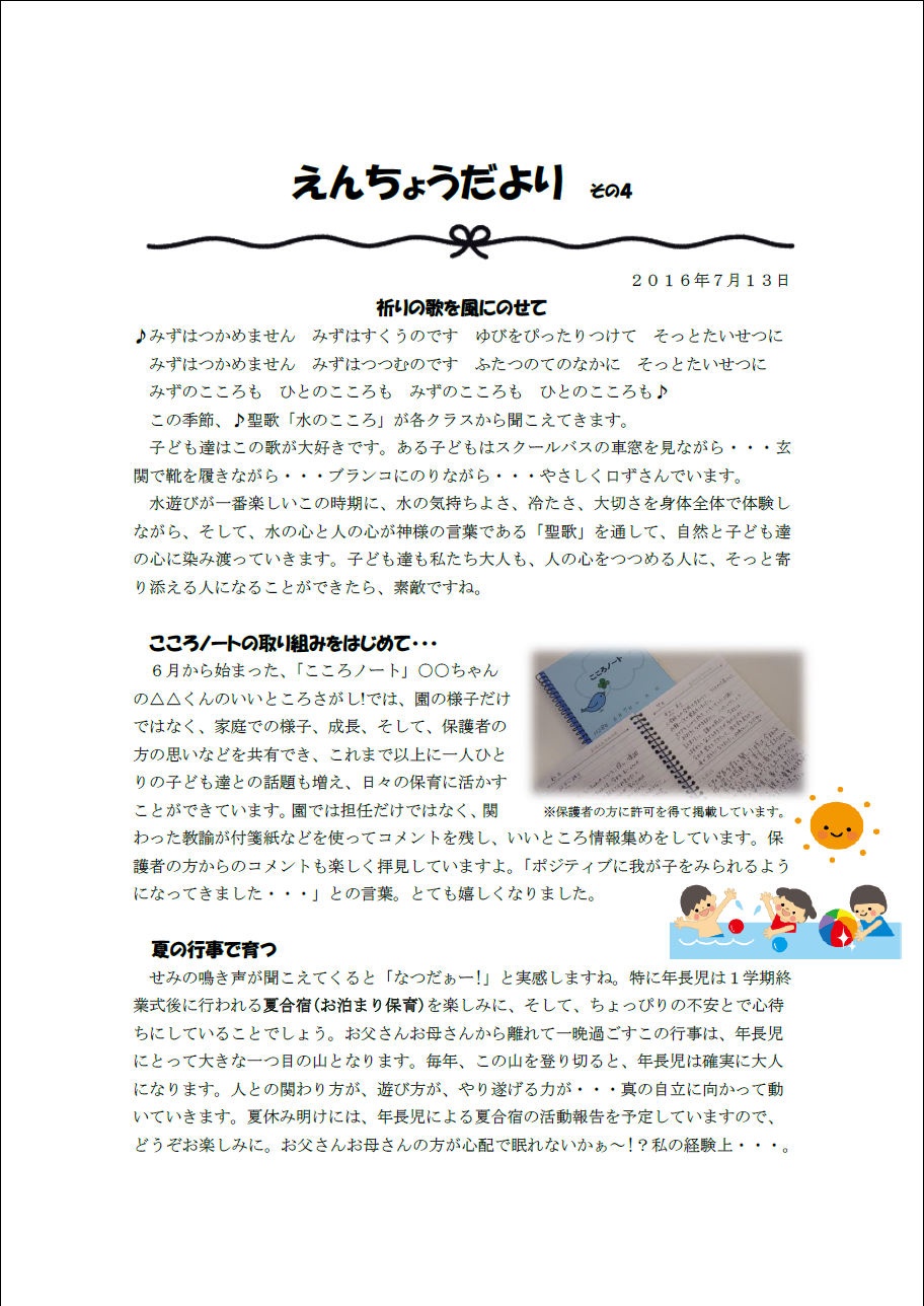 幼稚園からのお知らせ
