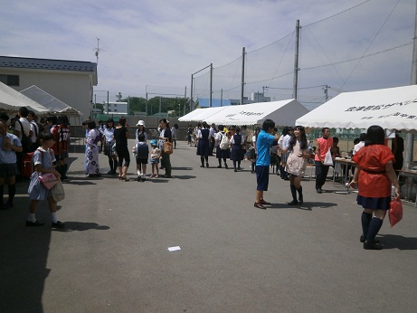 職員駐車場では、運動部の部員が模擬店を営業しました。お客さんによいものを安く提供しようと、何度も試作・試食をして納得の味を追求していました。その甲斐もあってか、どの模擬店も飛ぶような売れ行きで、終了間際の時刻にはどの模擬店もほぼ完売状態でした。