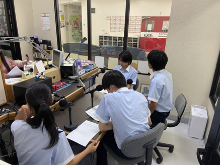 9月20日(水)、エフエムあいづ「わかまつスクールステーション」に、生徒会役員4人が出演しました。このコーナーは会津若松市内の中学生が出演するもので、毎年行われています。生放送に緊張の4人でしたが、無事に大役を終えることができました。放送内容は、下記のエフエムあいづHPで聴くことができますので、ぜひとも聴いてみてください。