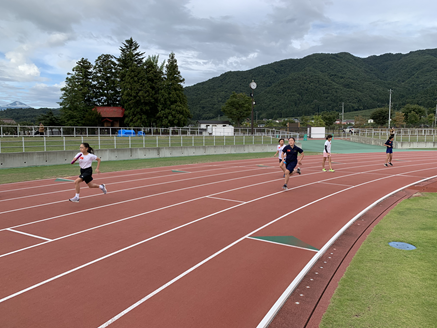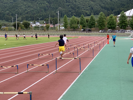 9月23日(土)あいづ陸上競技場にて、小学5・6年生を対象とした陸上教室が開催されました。5月、6月に続いて3回目の開催となった今回は、24名の児童の参加がありました。全体でウーミングアップを行った後に、短距離と長距離に分かれて細かい指導が行われました。最後は、参加者全員で4×100mリレー対決を行い、大変盛り上がりました。