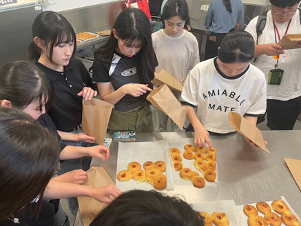 昼食を挟み、午後は料理体験としてジャムドロップスクッキーを手作りしました。英語で記載されたレシピを読み取り、グループで協力しながら見た目も味も良いクッキーを作ることができました。