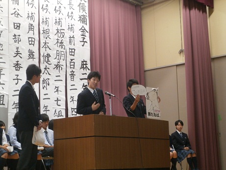 立会演説会では、それぞれの候補者と応援演説者が、自らのビジョンを必死になって訴えました。また熱い思いを訴えたいあまり、マイクを使わないで訴えかけたり、任務にかける思いを歌にしたりといったパフォーマンスも飛び出しました。