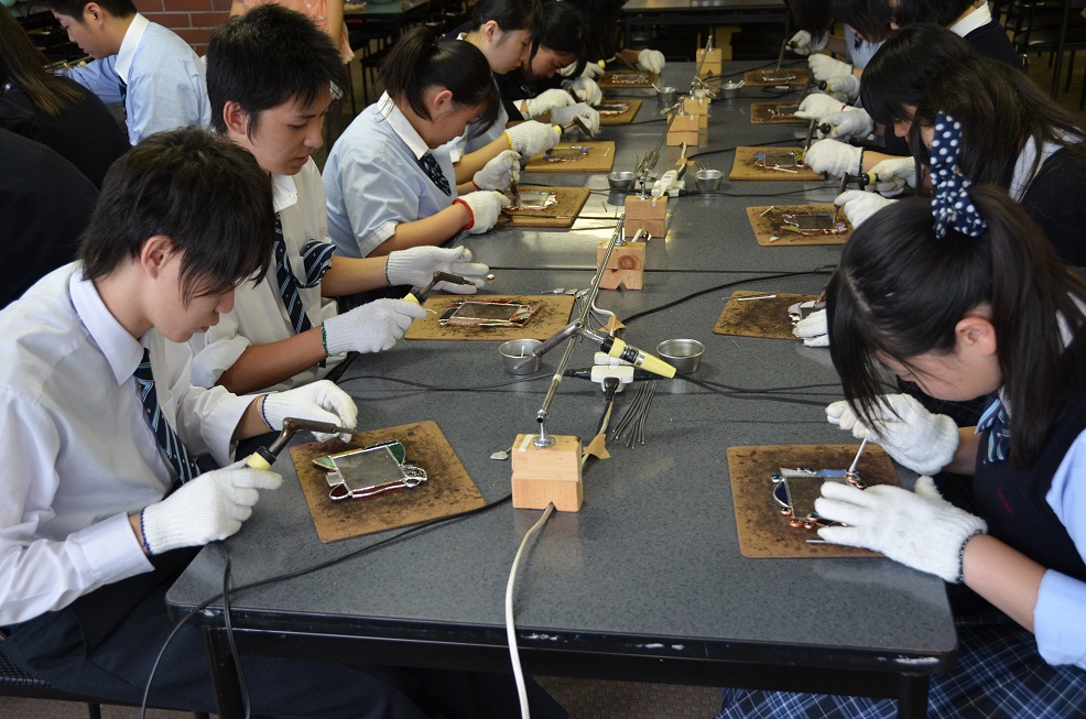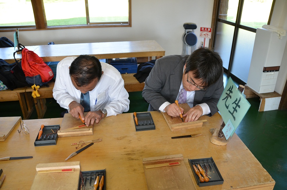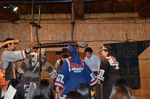 初日はアイヌ民族博物館に行き、アイヌ文化について学びました。北海道に根ざしたアイヌの民族衣装・踊り・道具などに実際に触れて、貴重な異文化体験の機会となったようでした。アイヌ民具の製作体験コーナーでは、先生方も目の色を変えて作業をしていました。