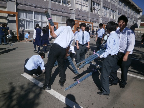 バザー終了後の片付けも、保護者・児童生徒・教員が一体となって行いました。片付けには当初2時間を予定していましたが、予想以上の手際の良さに、約1時間後にはほとんどの片付けを終えることができました。バザー参加のご父兄からも、生徒の働きを賞賛する言葉を多くいただきました。