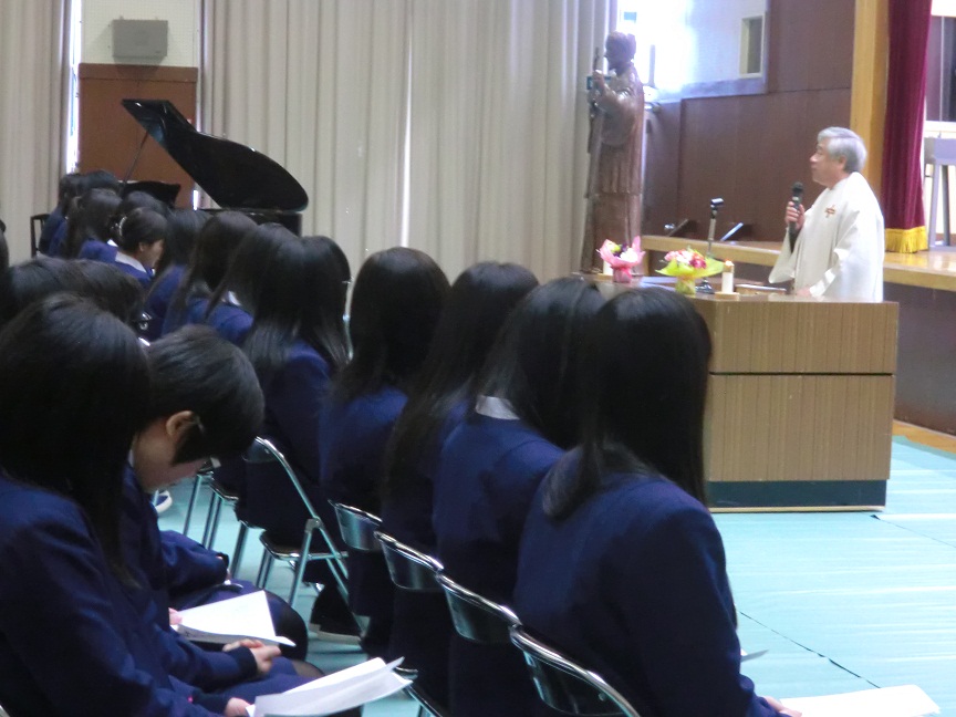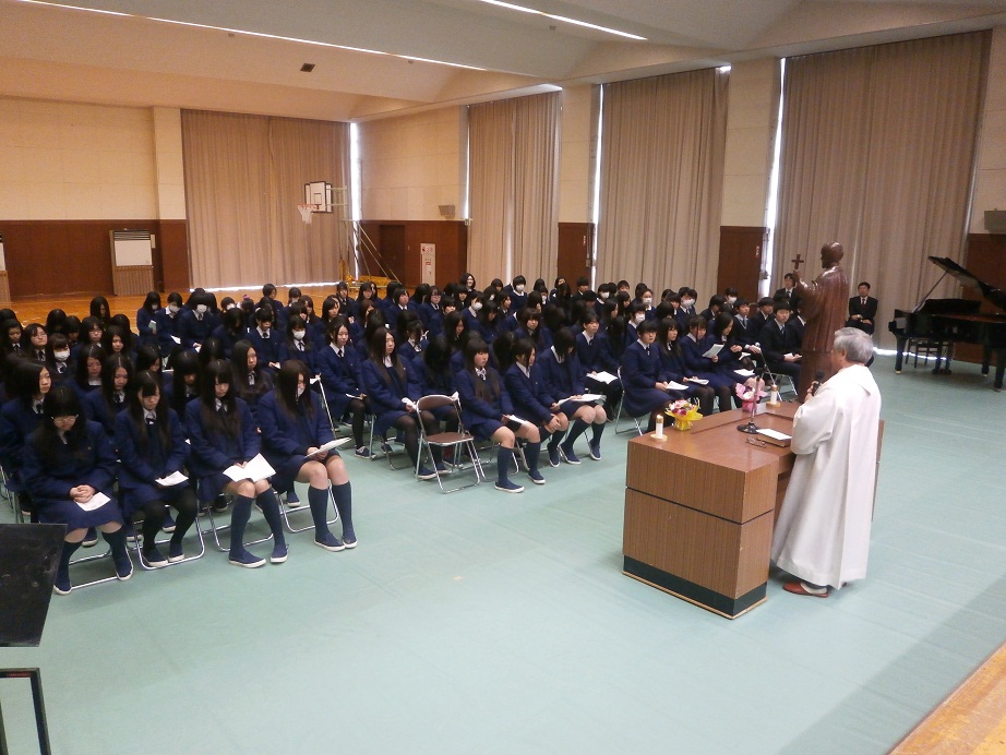 2月14日、神父様をお招きして、中学3年生・高校3年生によるみことばの祭儀が行われました。