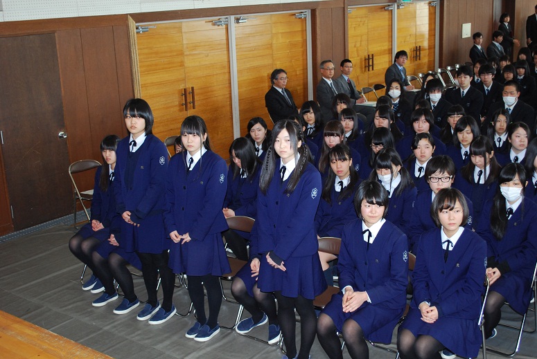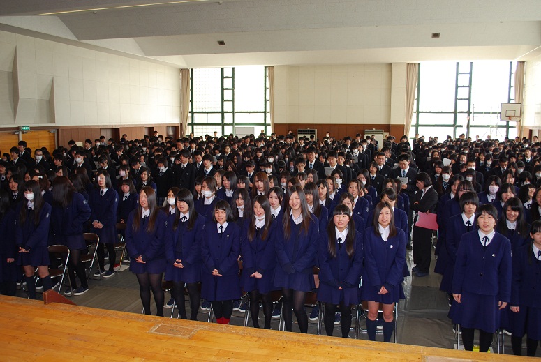3月4日、卒業式に先立って高校3年生への表彰式および卒業式歌の練習が行われました。