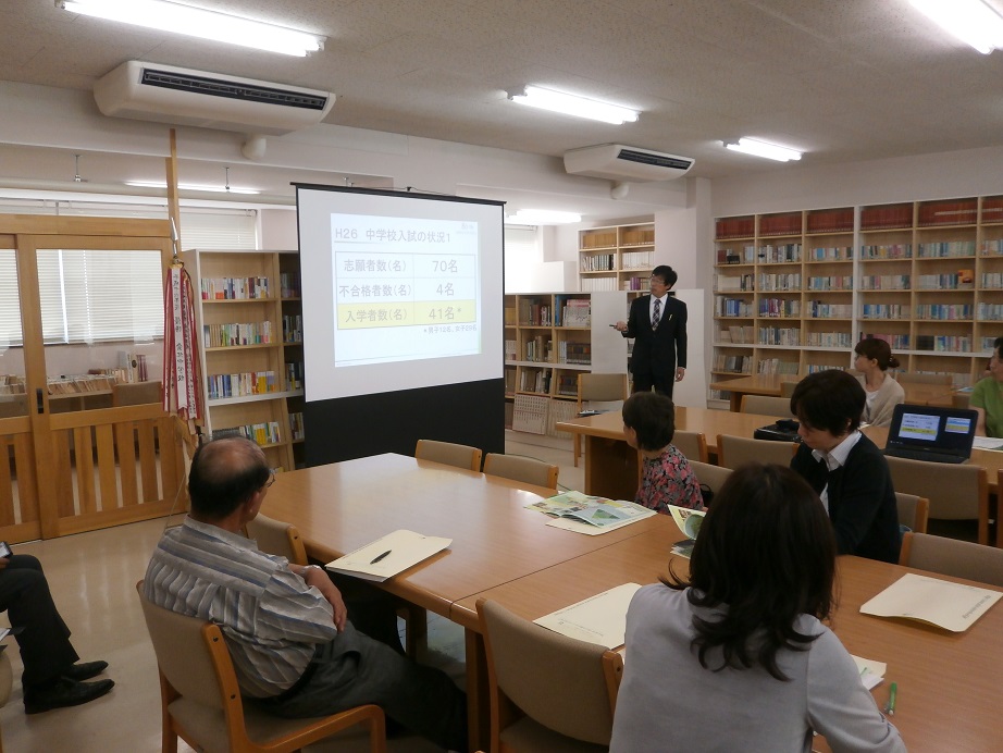 テスト中の様子です。受験生たちは集中して取り組んでいました。生徒がテストを受験している間に、ご父兄に対する説明会も行われ、ザベリオの教育の特色を紹介しました。