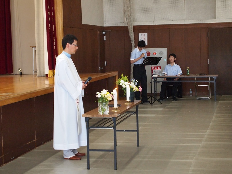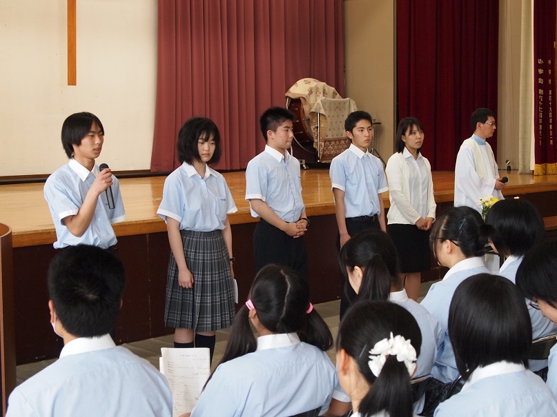 最後には共同祈願が行われました。代表の生徒たちは、身近なことから世界平和に至るまで、様々な願いを自分の言葉で述べていました。