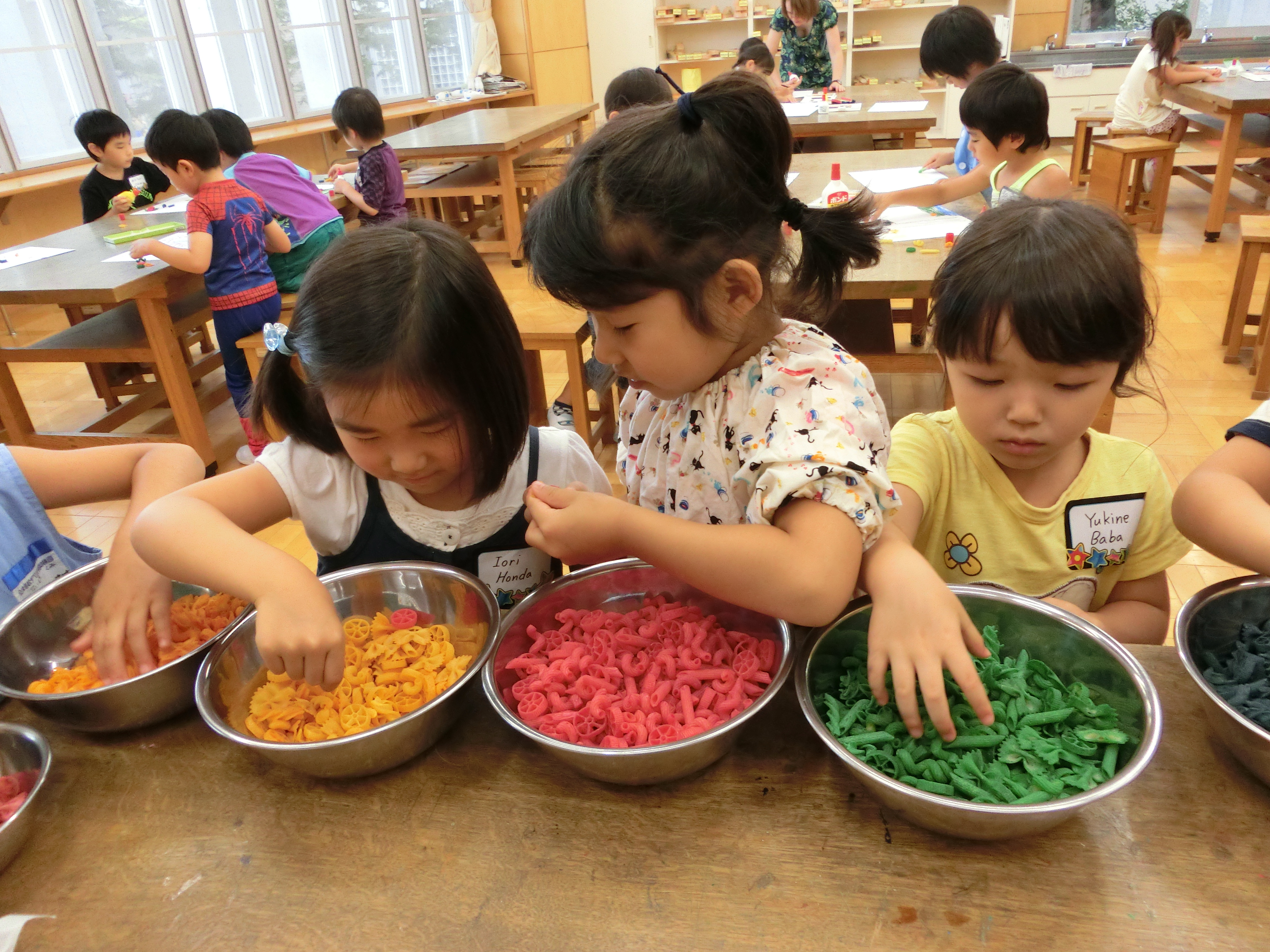 1日目の25日は、食べ物をテーマにパスタアートに挑戦しました。