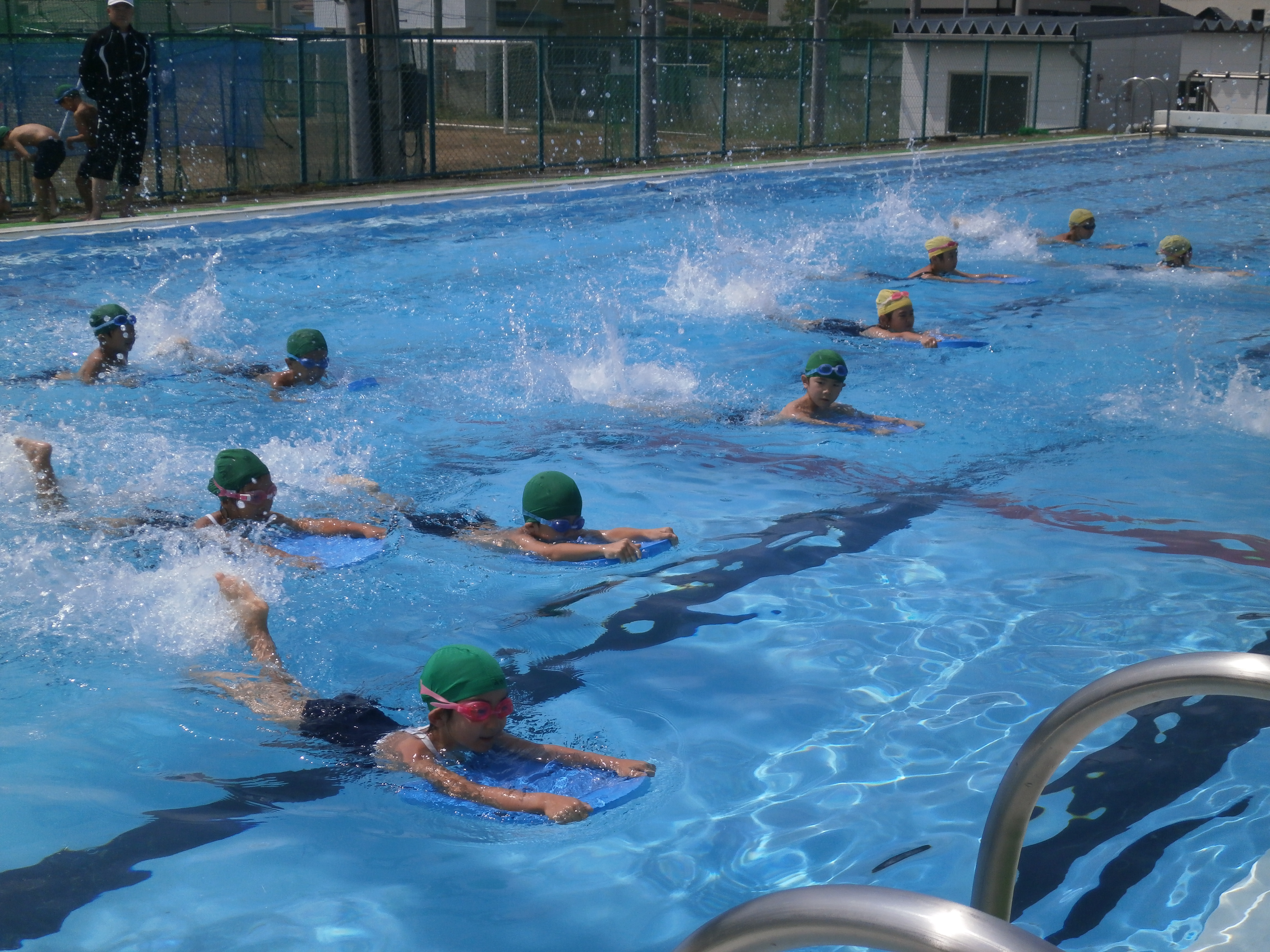 それぞれの学年で、水中歩行、ビート板、10メートル、25メートル、50メートルなどに挑戦しました。