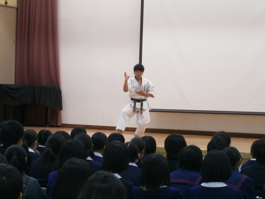 クロージングセレモニーでは、部活動紹介のほか、空手で活躍する3年横澤くんの演武が披露されました。部活動見学の時間には、中学生がそれぞれ興味を持つ部活を熱心にチェックしていました。
