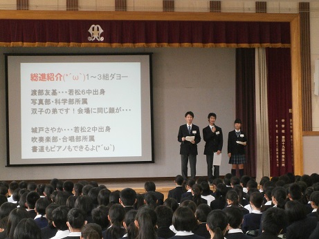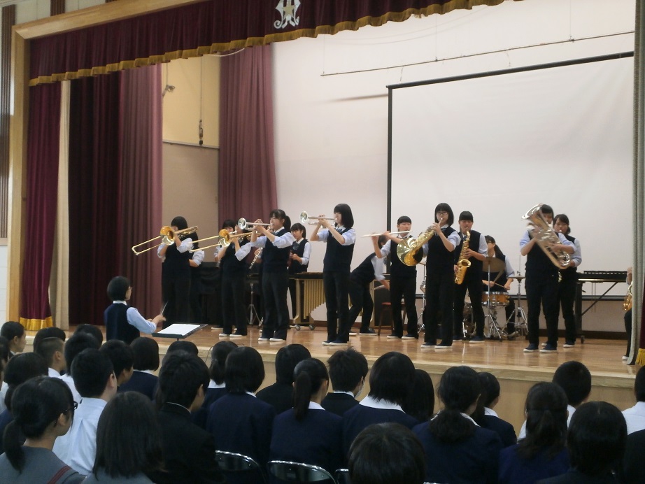 オープニングセレモニーでは、吹奏楽部が練習の成果を見せました。その後、スクリーンを使った本校の学校生活の紹介が行われました。