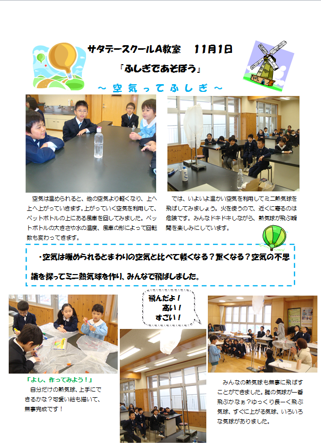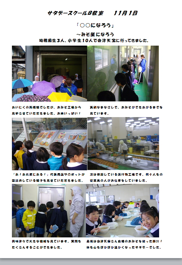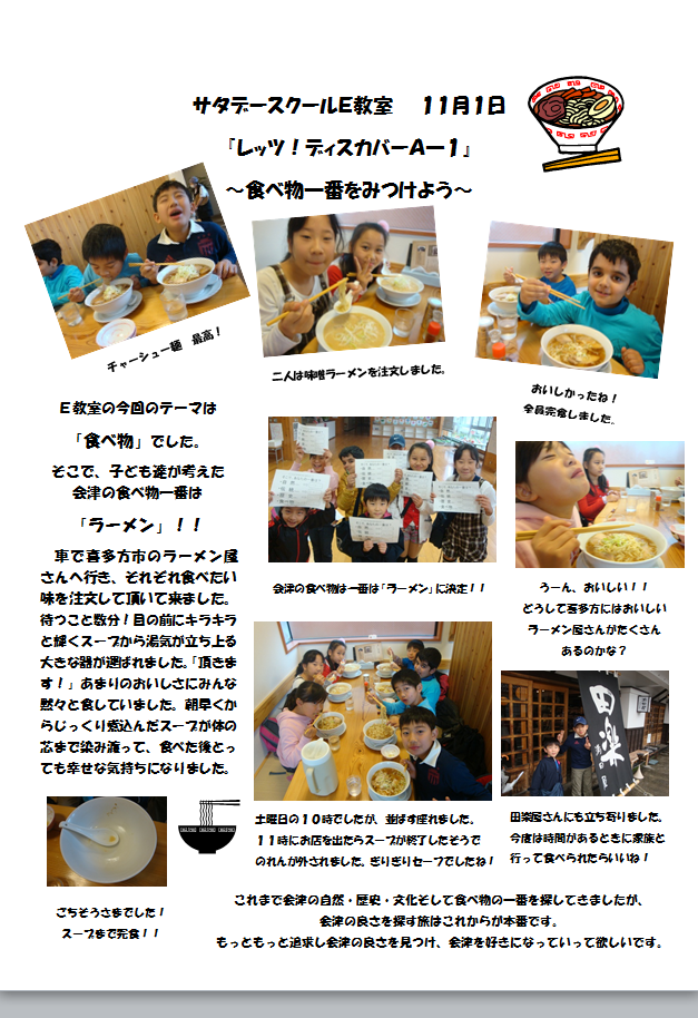 第4回サタデースクール(11月1日)の様子をアップしました。