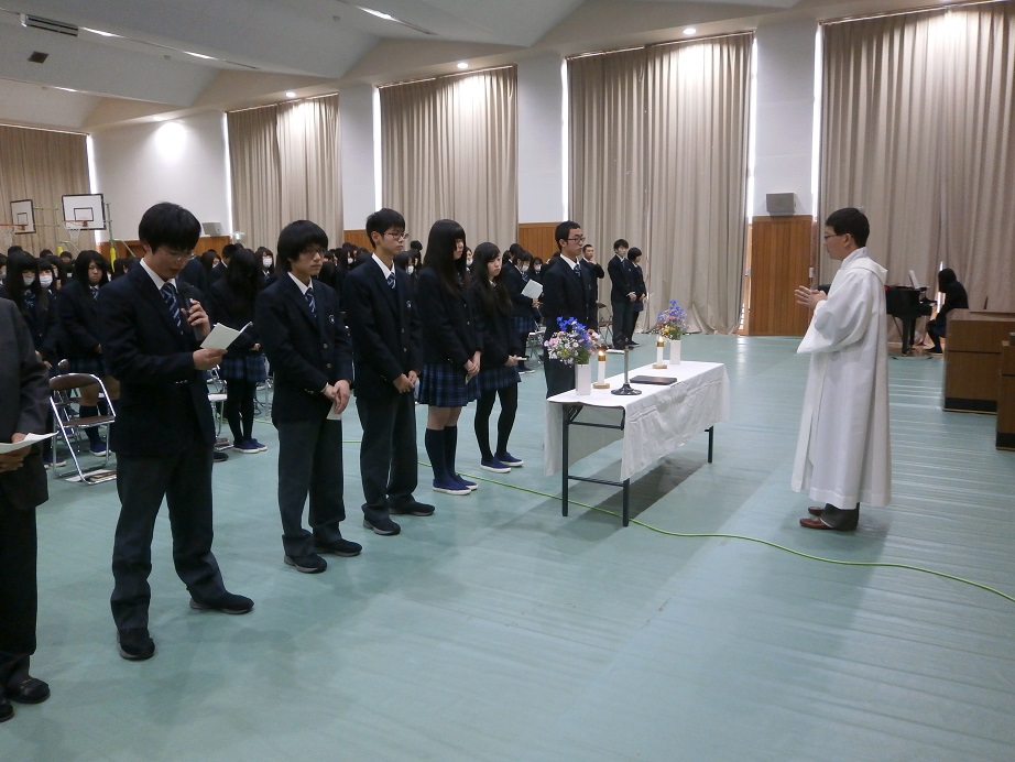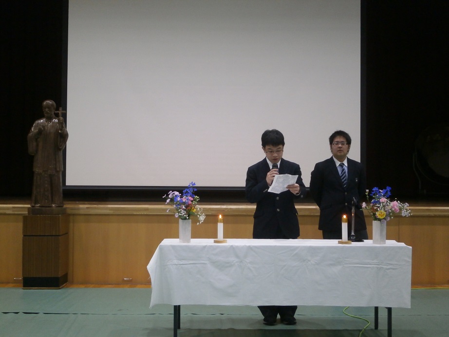 最後の共同祈願では、学業のこと、将来のこと、世界のことなど、自分なりの言葉で祈りを捧げました。