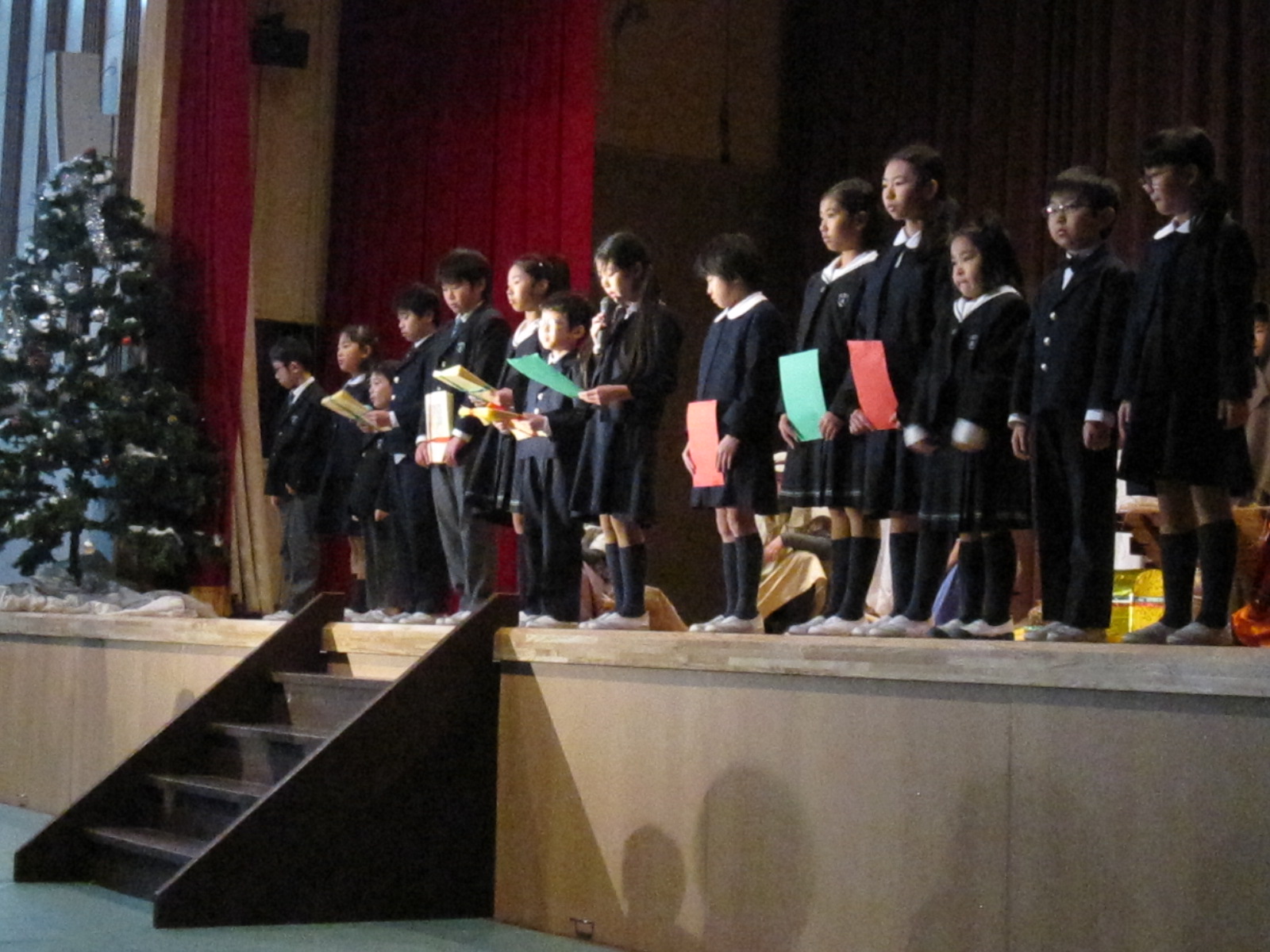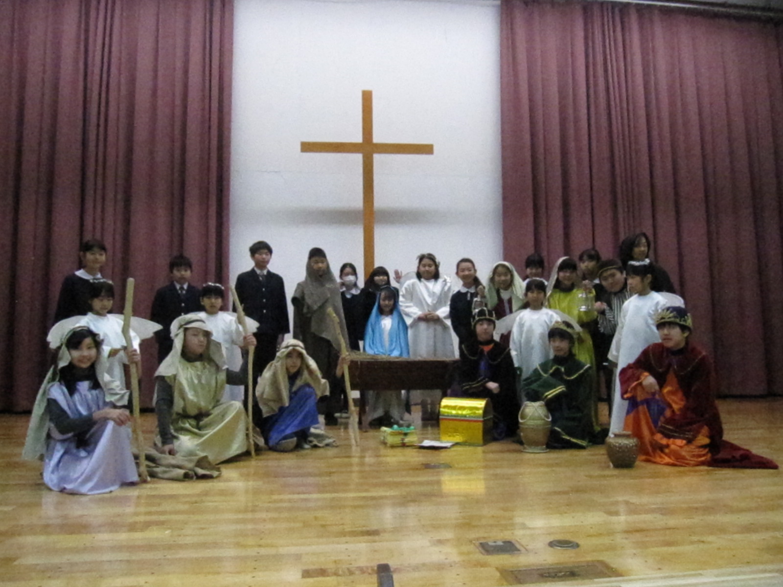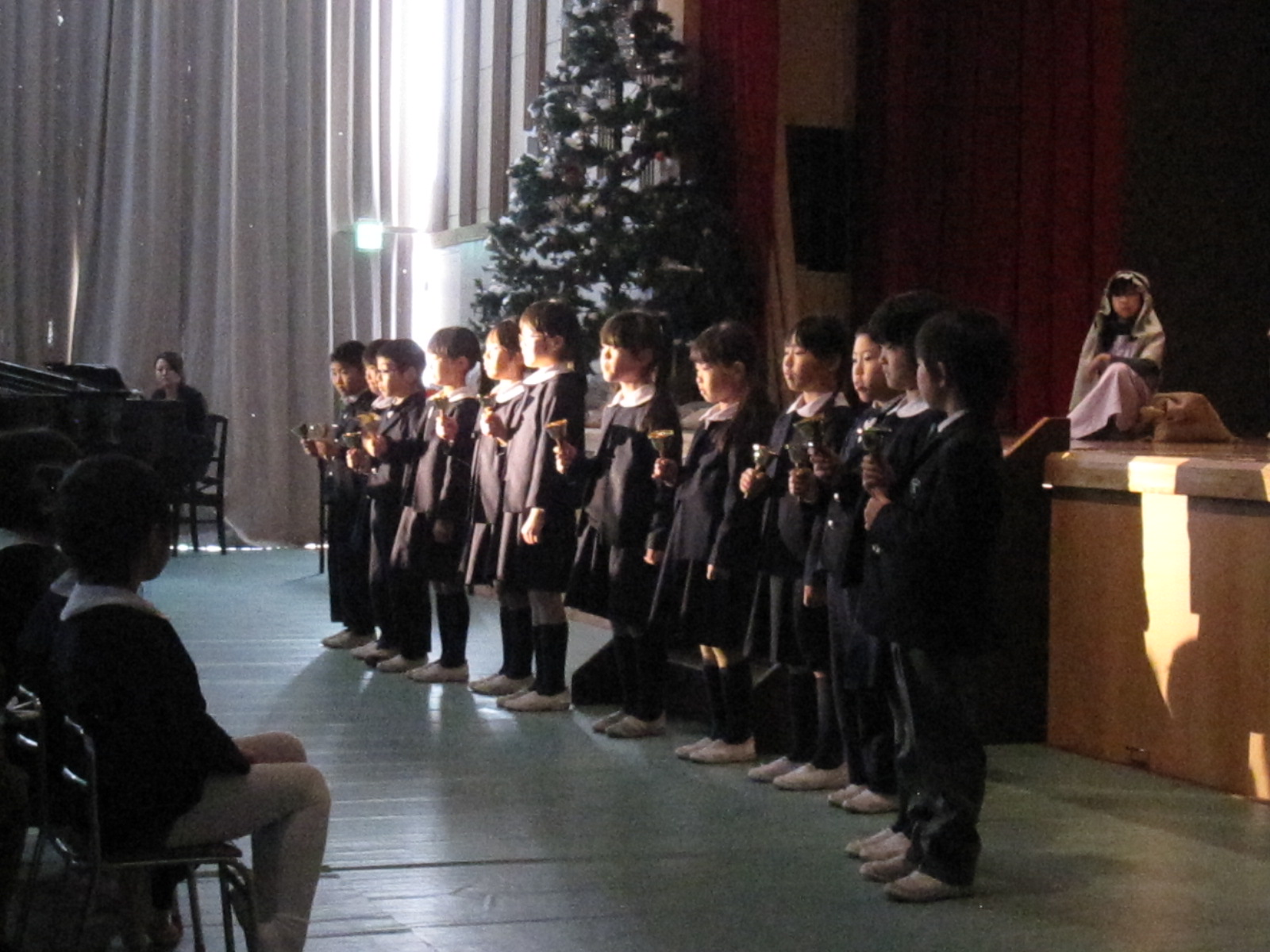 1,2年生によるオープニングで幕が開き、6年生による聖劇を全校生で