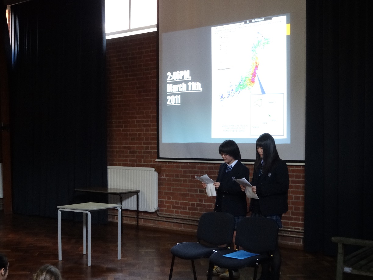 sinsaiprezen福島の高校生として、現地では震災の被害と現状についての発表を行い、現地の人に震災の恐ろしさと復興に向けた取り組みを伝えました。