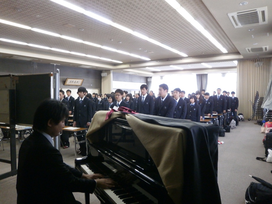 学習のプログラムが終了した後は、校歌の練習です。