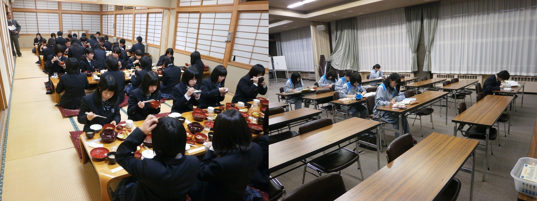 左は夜の食事の様子です。楽しく団らんして友人関係も出来てきました。