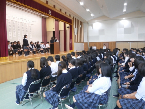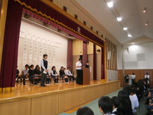 9月24日、高校生徒会役員選出のための、立会演説会が行われました。