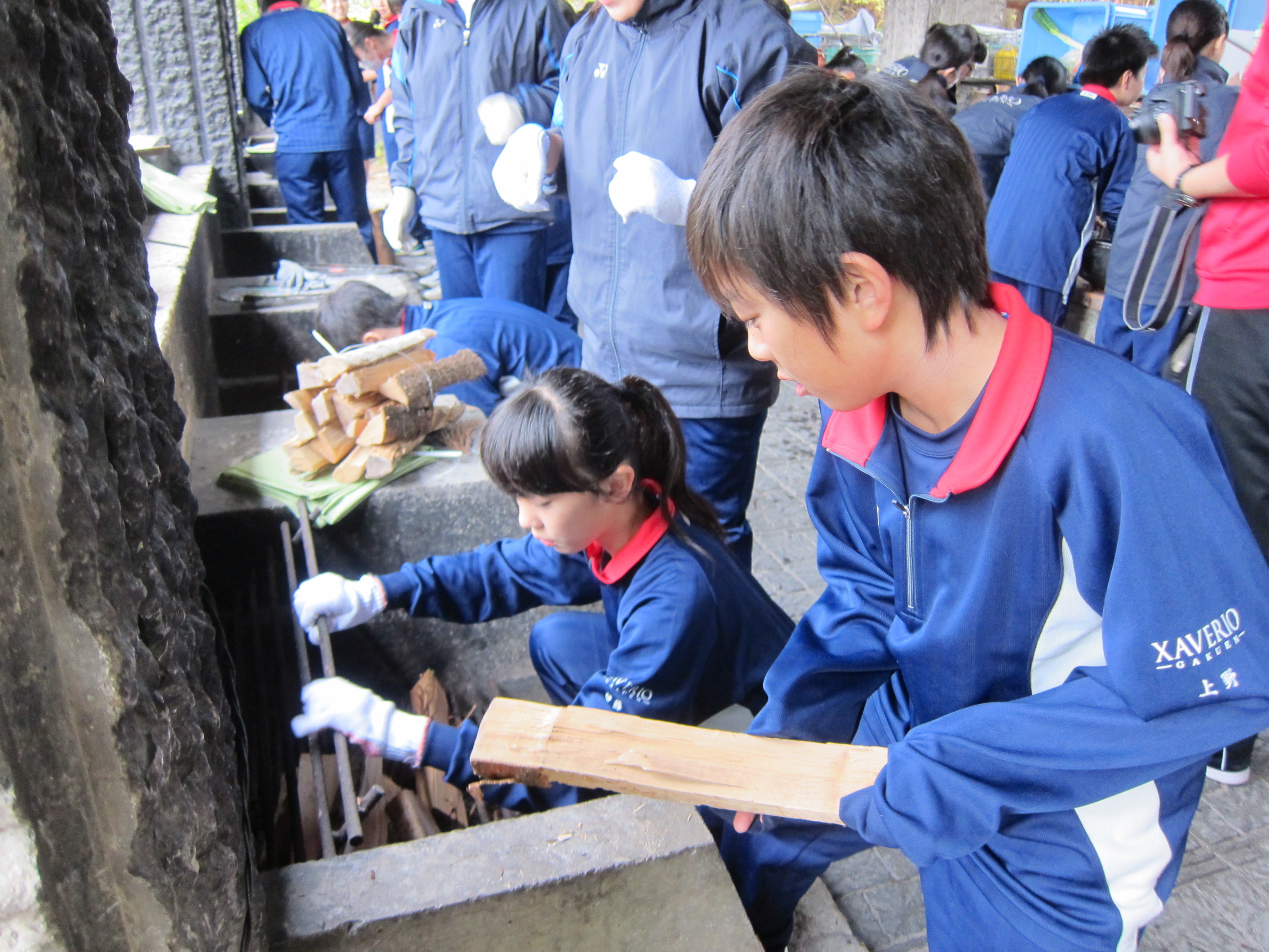 慣れない材料切りや薪に火をつける作業に苦戦しながらも、