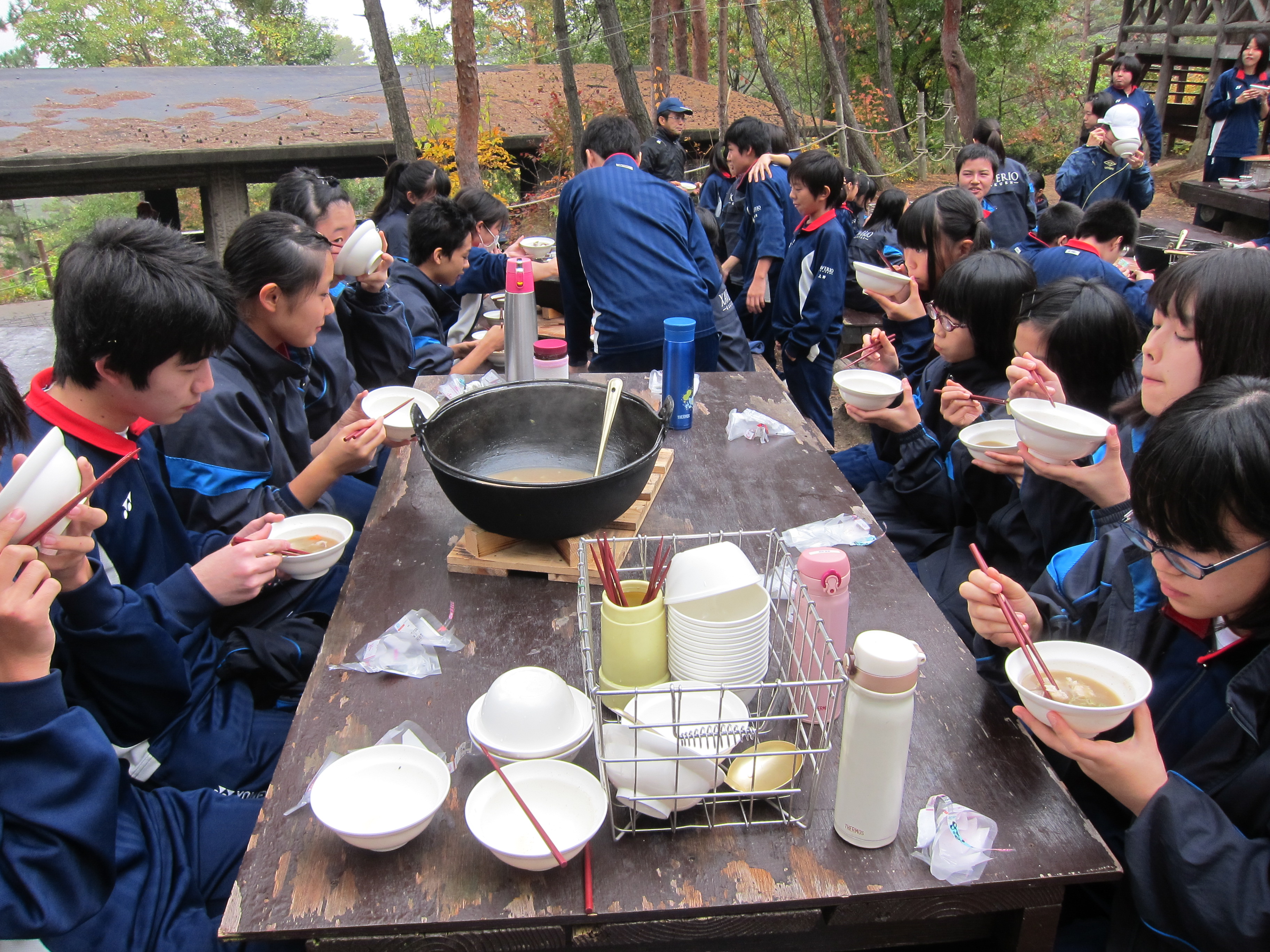 ようやく出来上がった芋煮を仲良くいただきます!