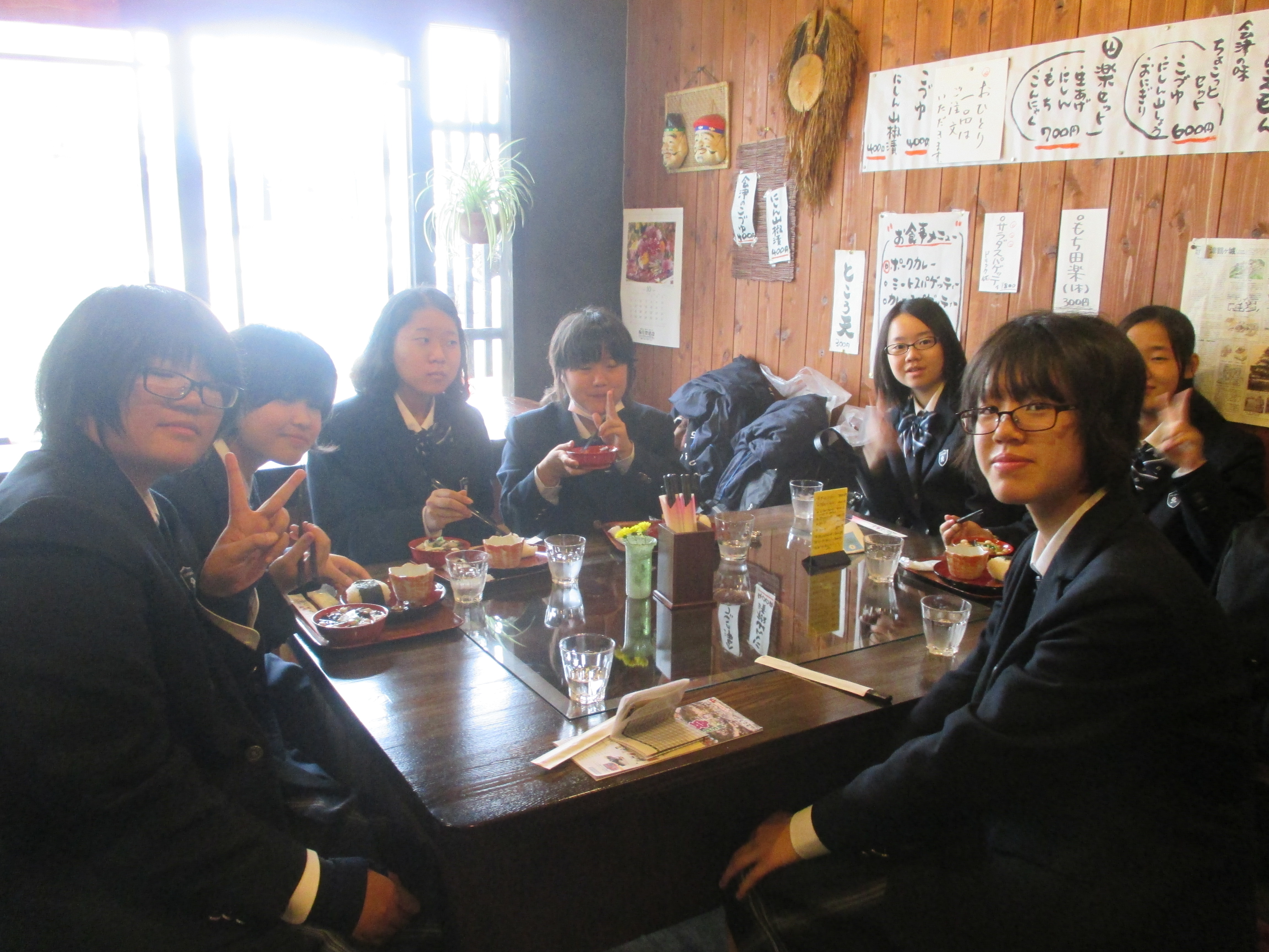 昼食時には、自分たちで予約したお店に向かい、会津の郷土料理などをおいしくいただきました。